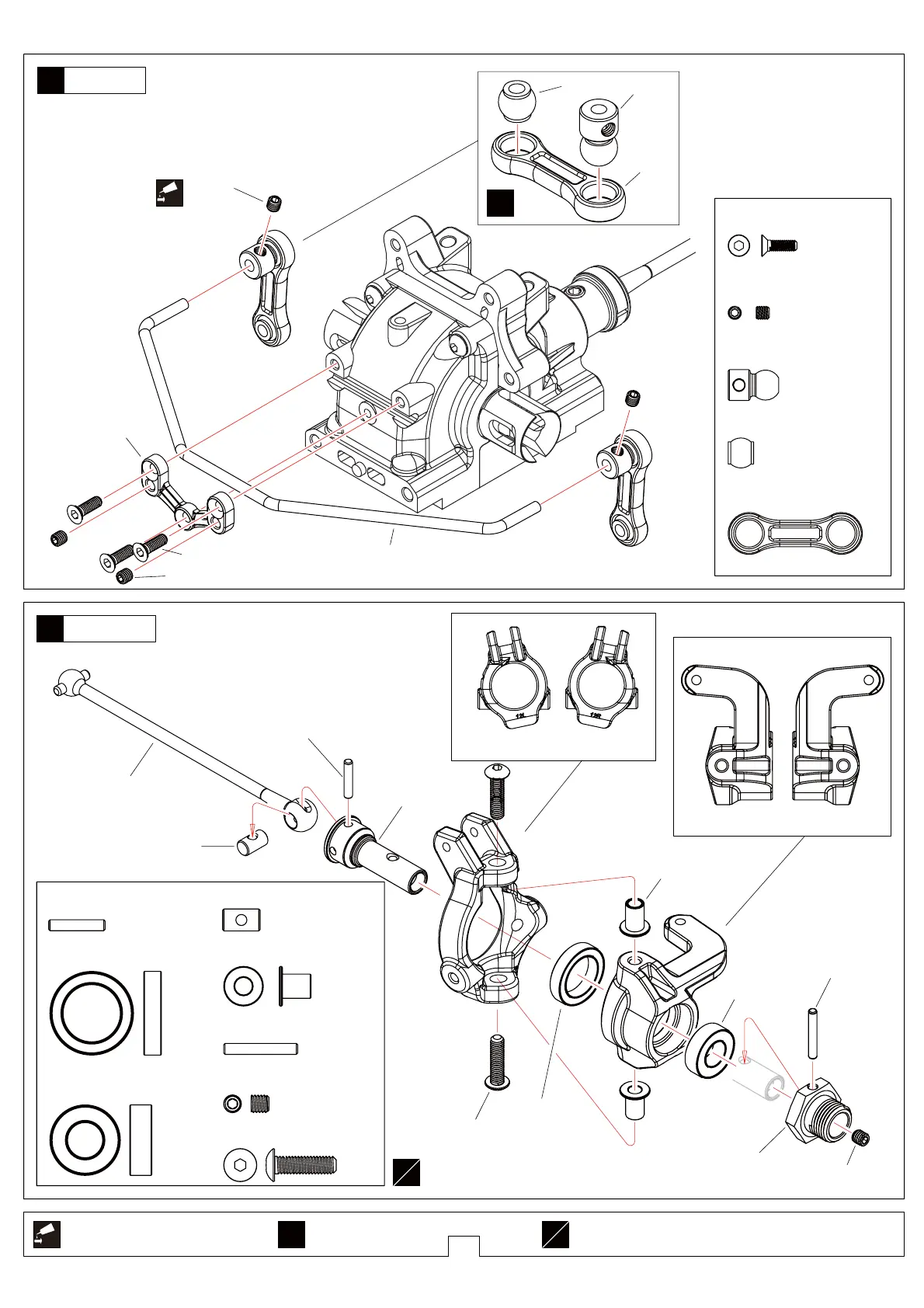 Team C GT8LE - Suspension and Steering Assembly; Front Swaybar and Hubs Assembly