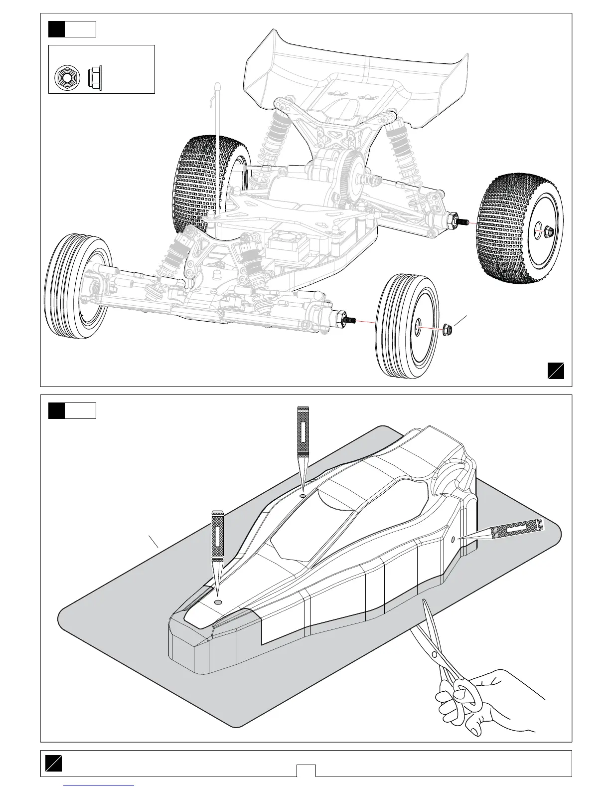 Team C TC02C - Wheel and Body Preparation; Wheel Installation onto Chassis; Body Preparation for Painting