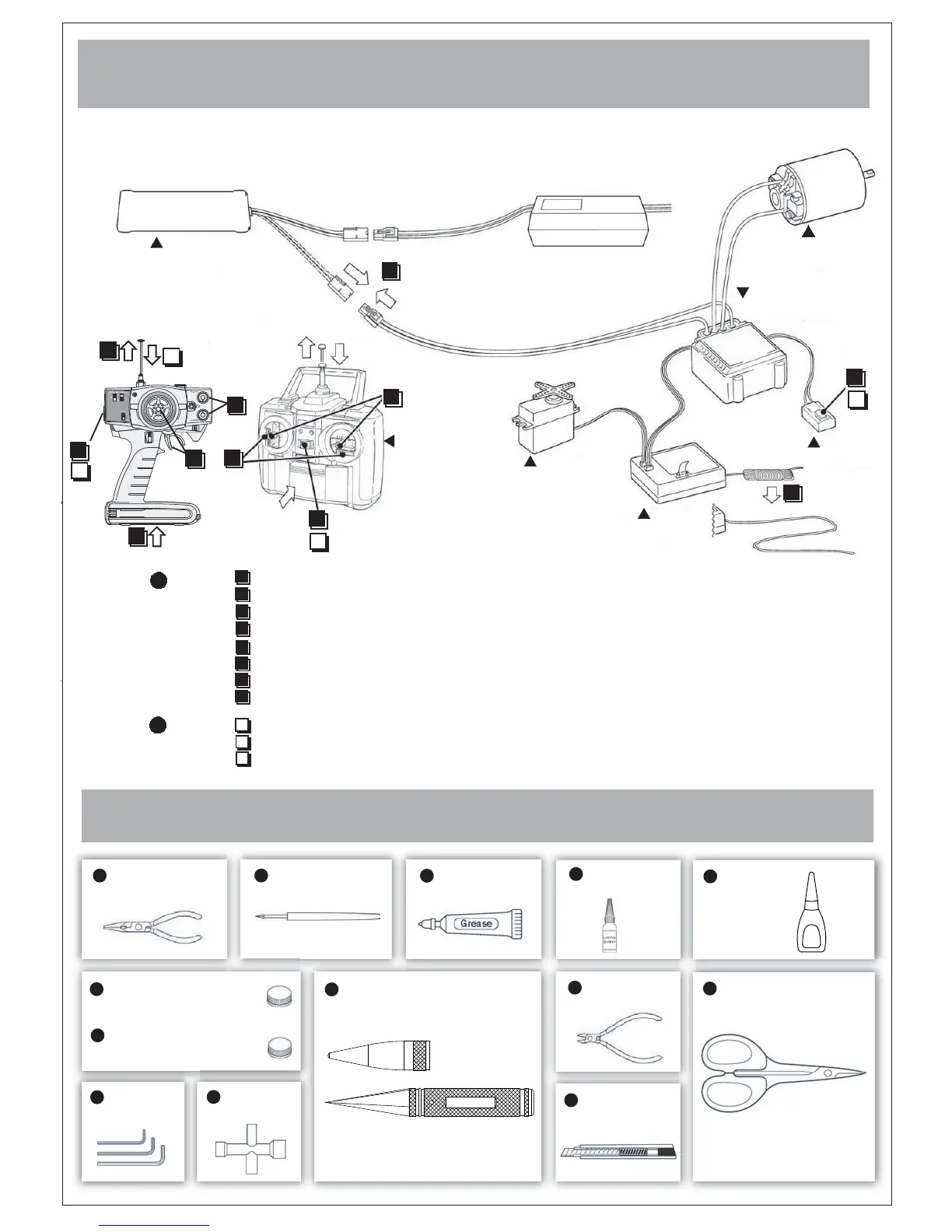 Set up the radio control system as indicated below