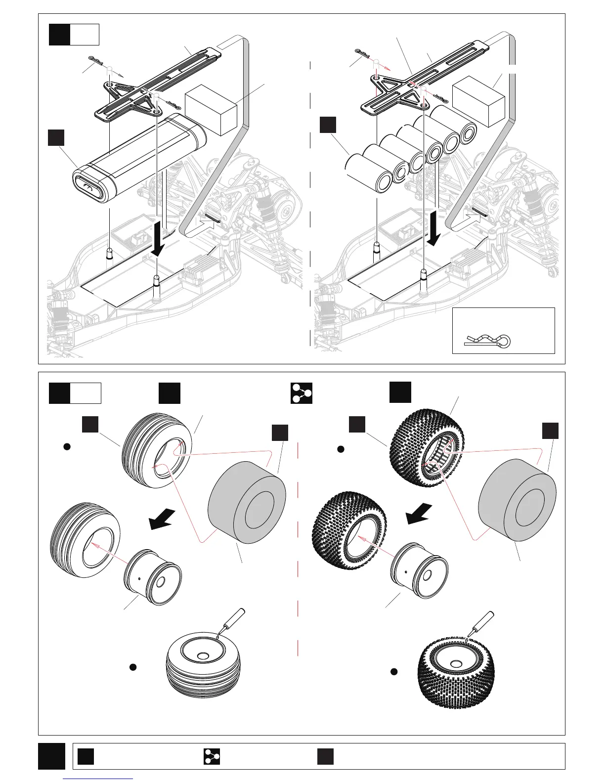 After fitting wheels to tyres,apply instant glue as shown