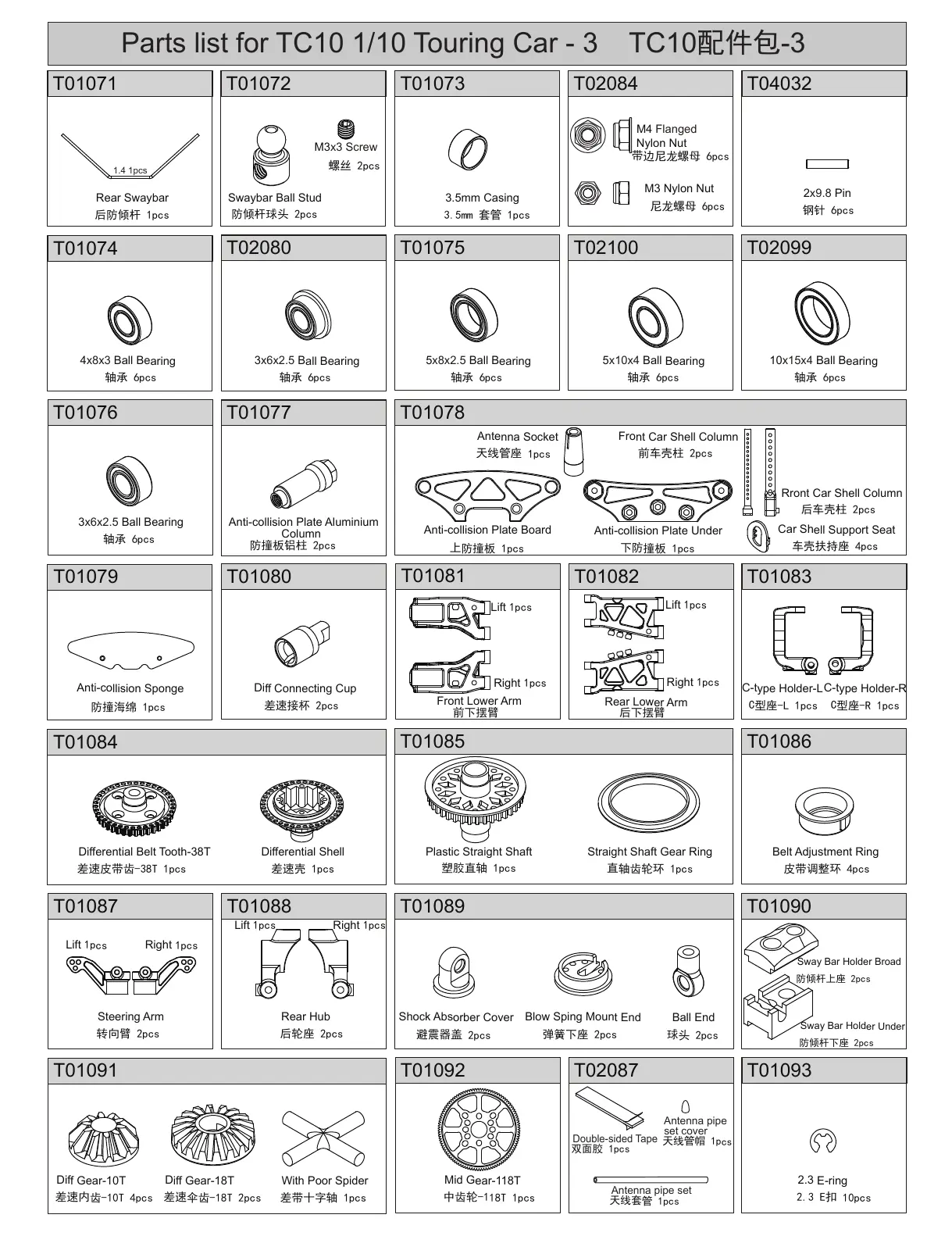Parts list for TC10 1/10 Touring Car - 3 TC10配件包-3