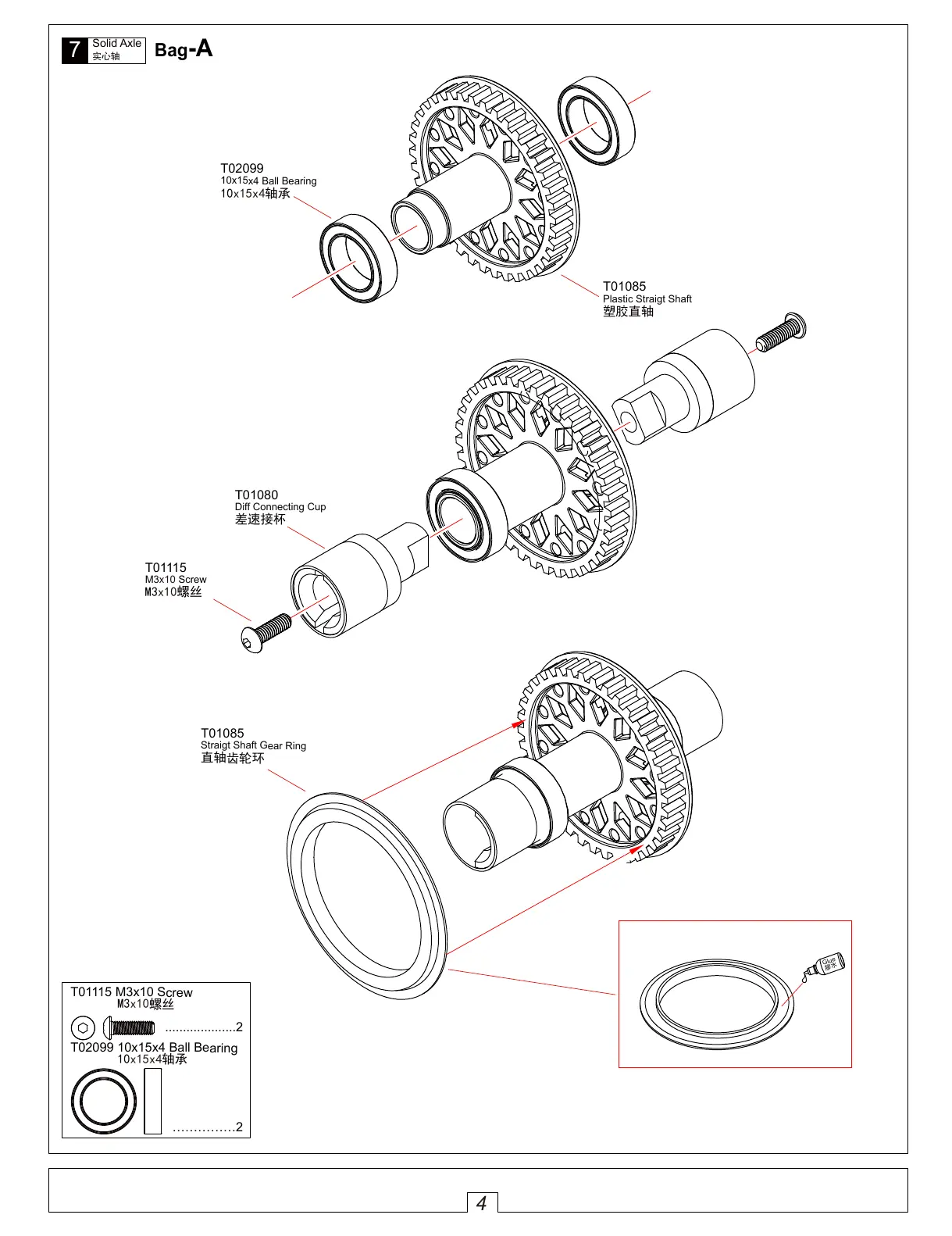 Team C TC10 - Solid Axle Assembly; Solid Axle - Bag-A