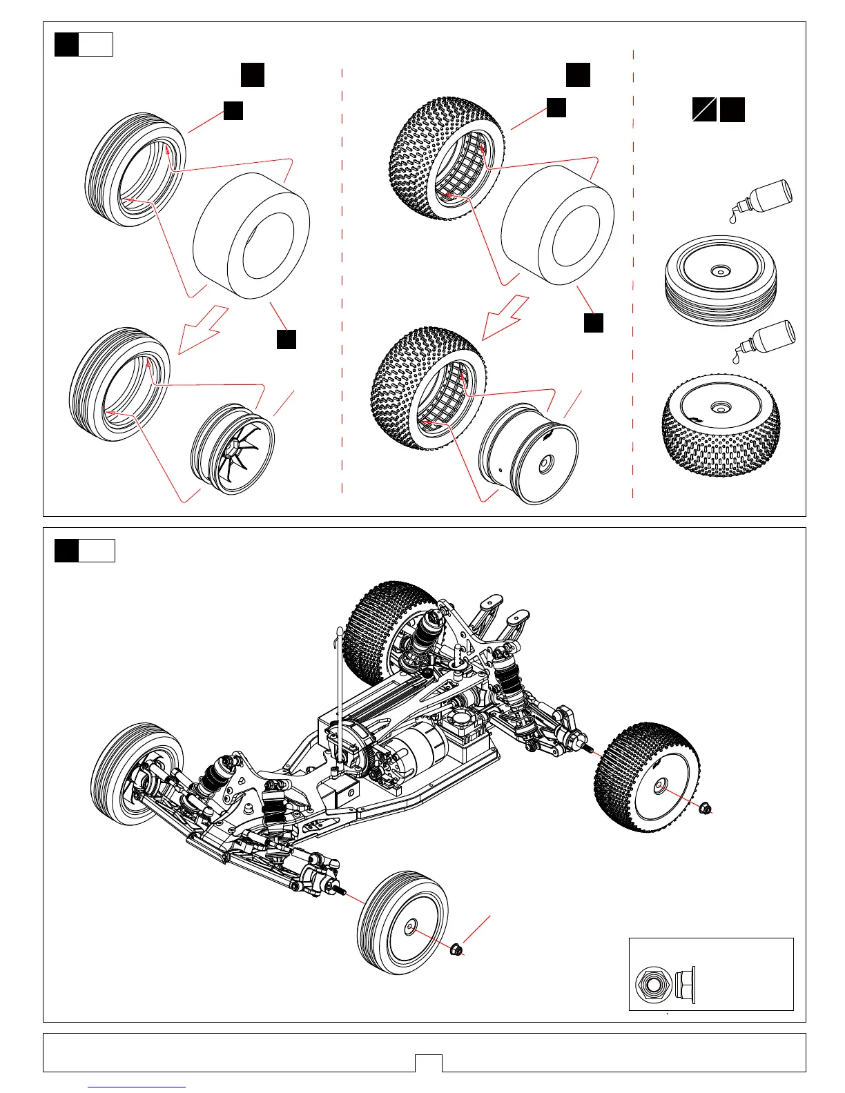 轮胎裝好后如图打胶水