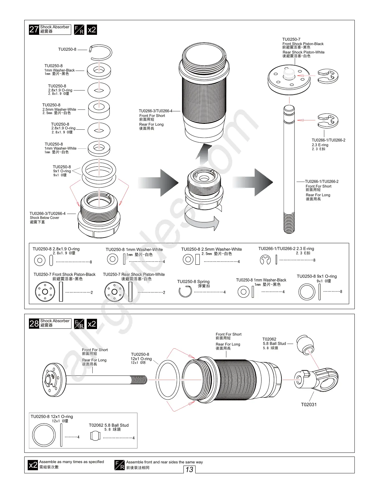 Assemble front and rear sides the same way