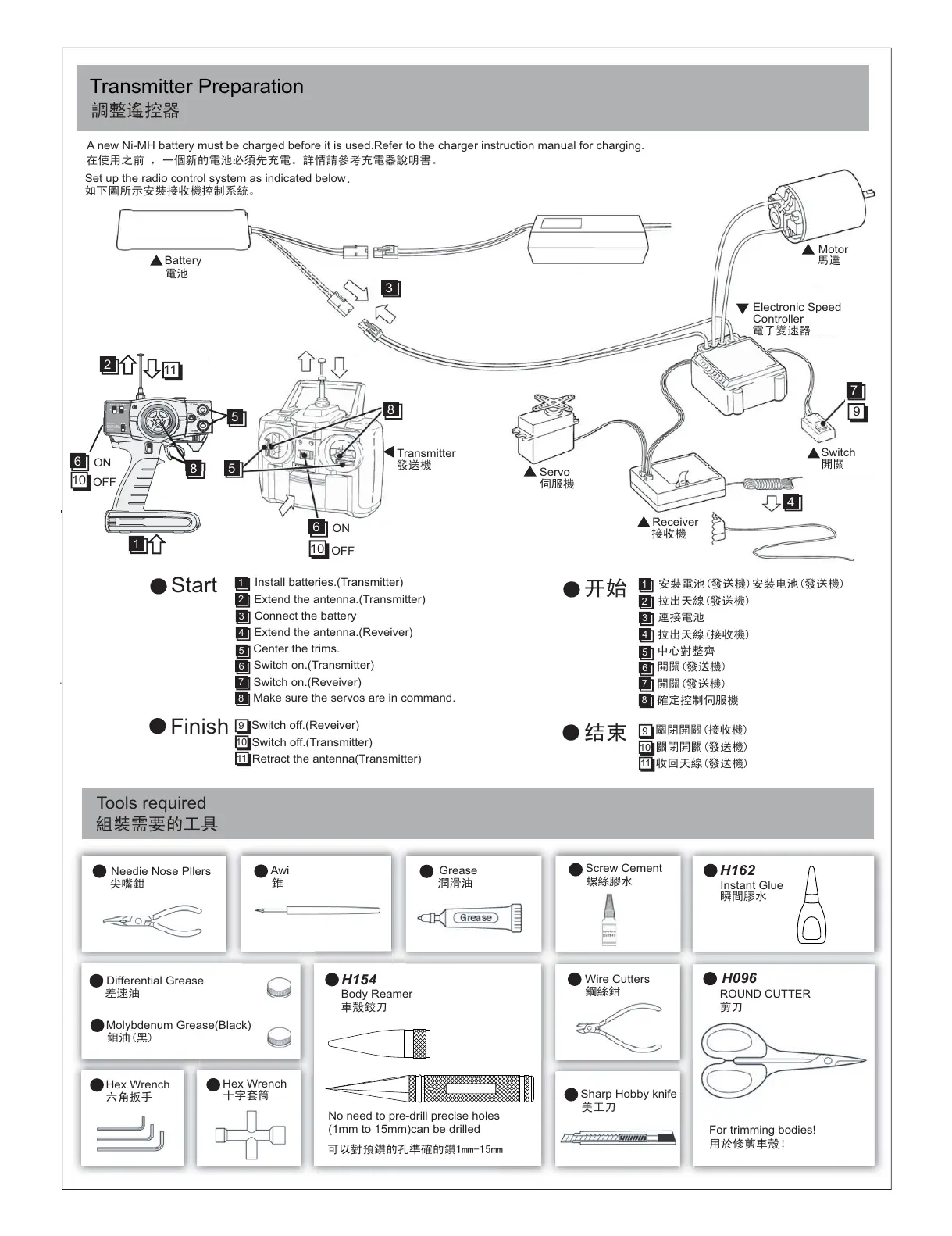 Set up the radio control system as indicated below.