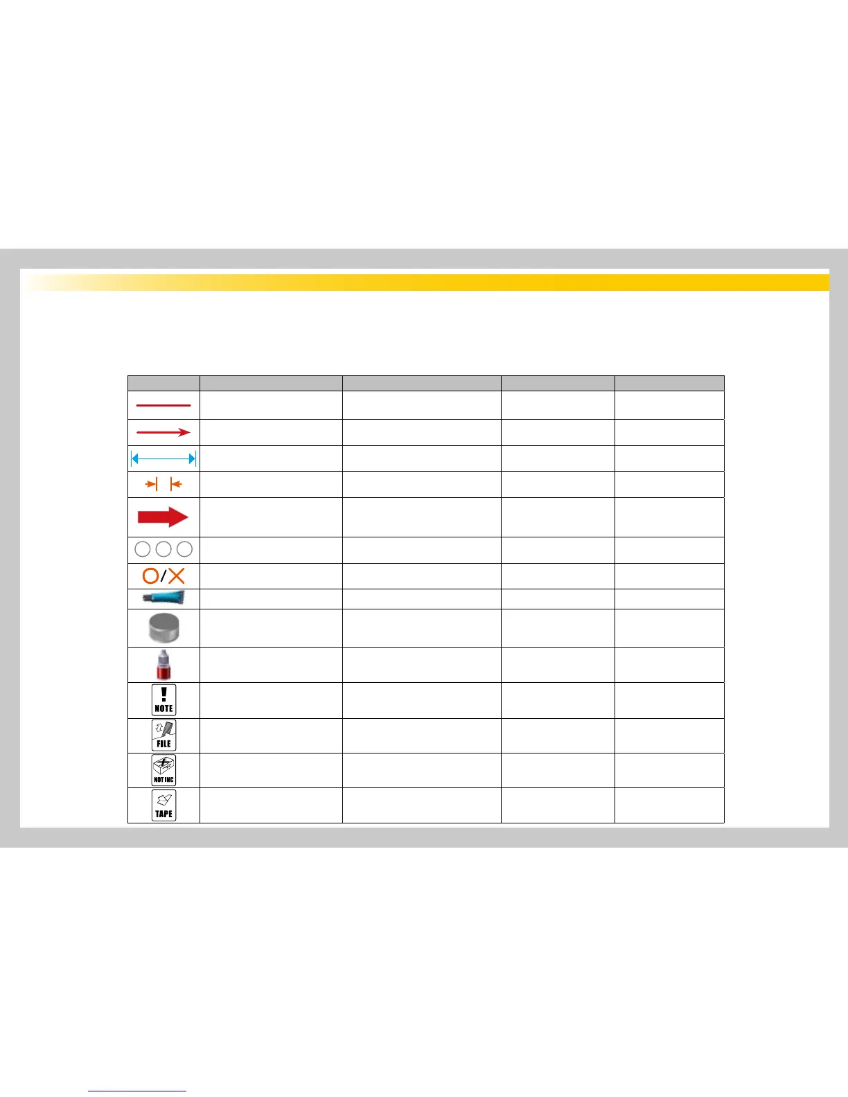 下記のシンボル(記号)はキット組立の各ステージで使用されています。