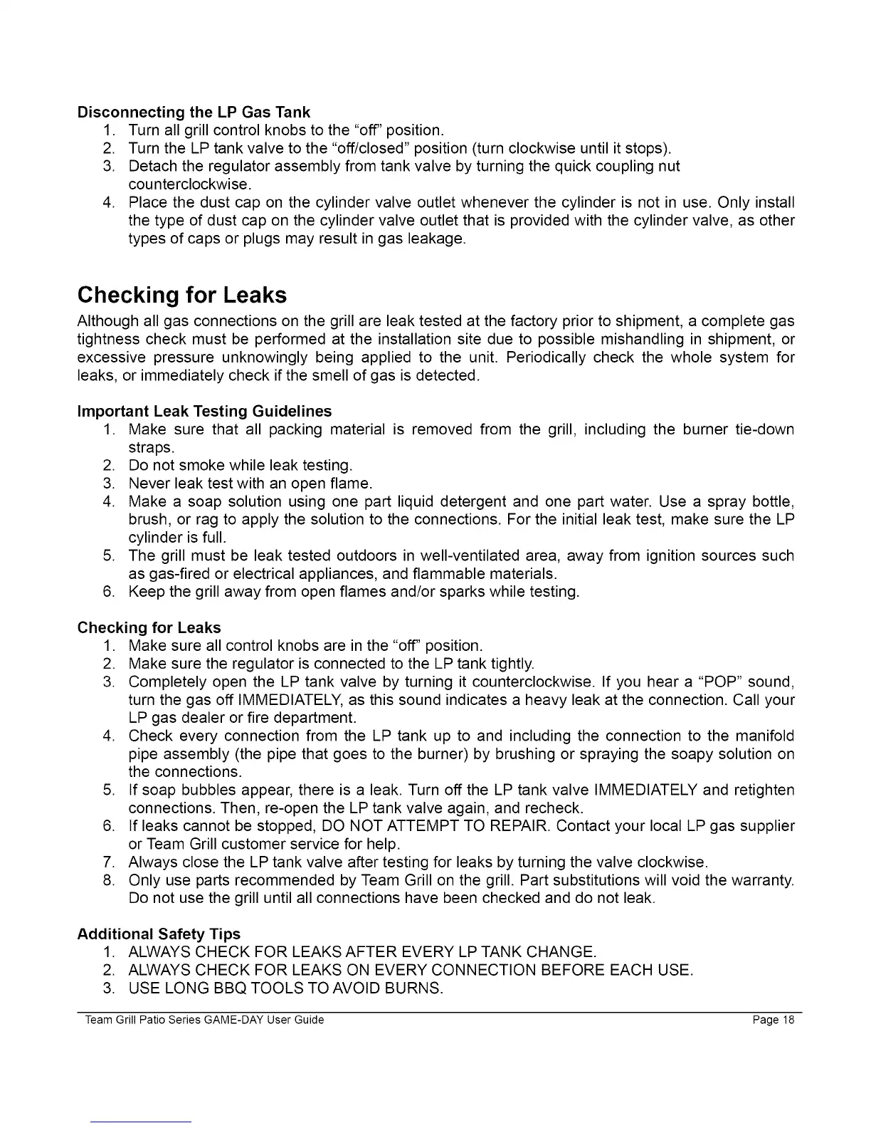Team Grill Patio Series GAME-DAY User Guide Page 18