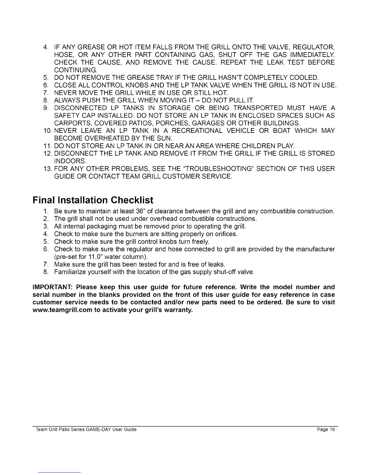Team Grill Patio Series GAME-DAY User Guide Page 19