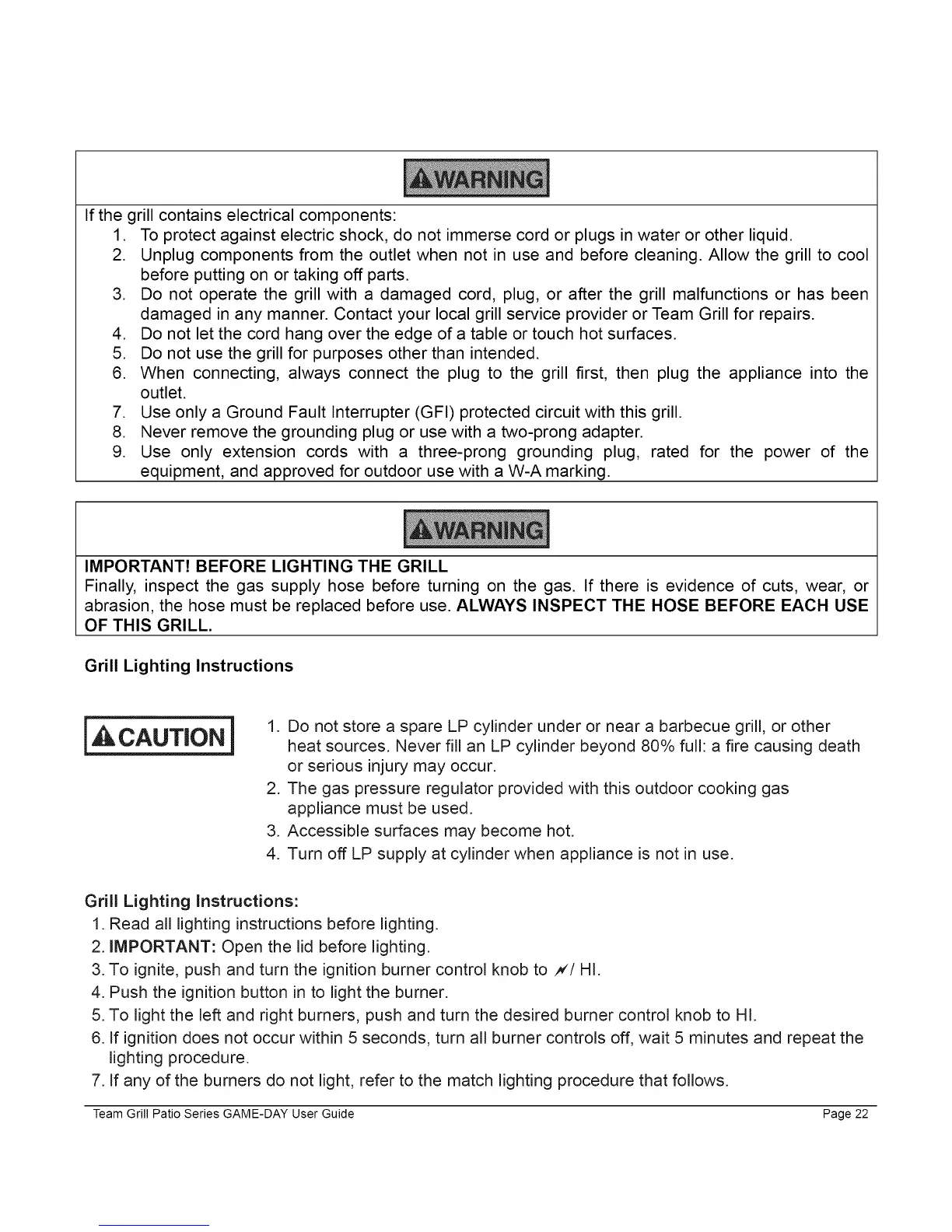 Team Grill Patio Series GAME-DAY User Guide Page 22