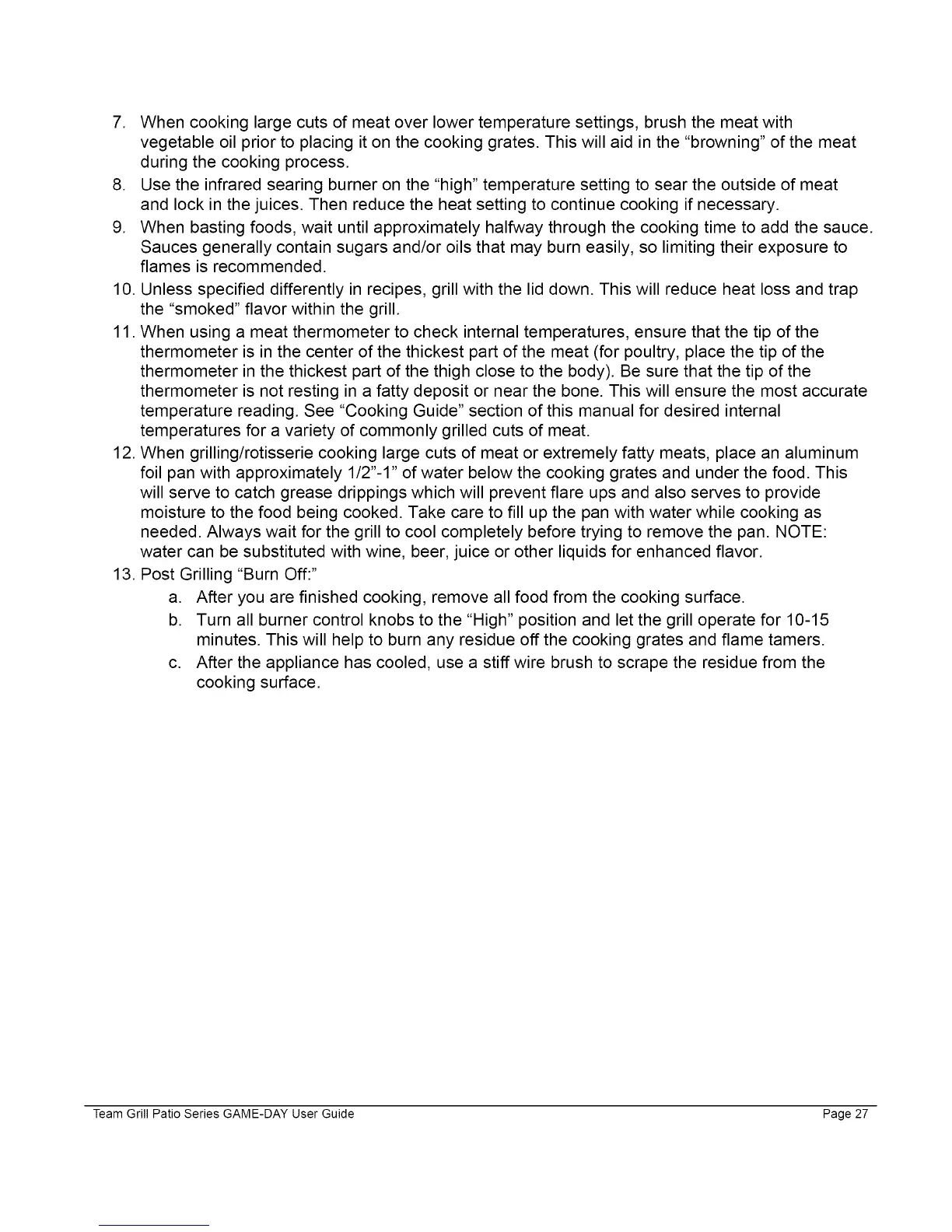 Team Grill Patio Series GAME-DAY User Guide Page 27
