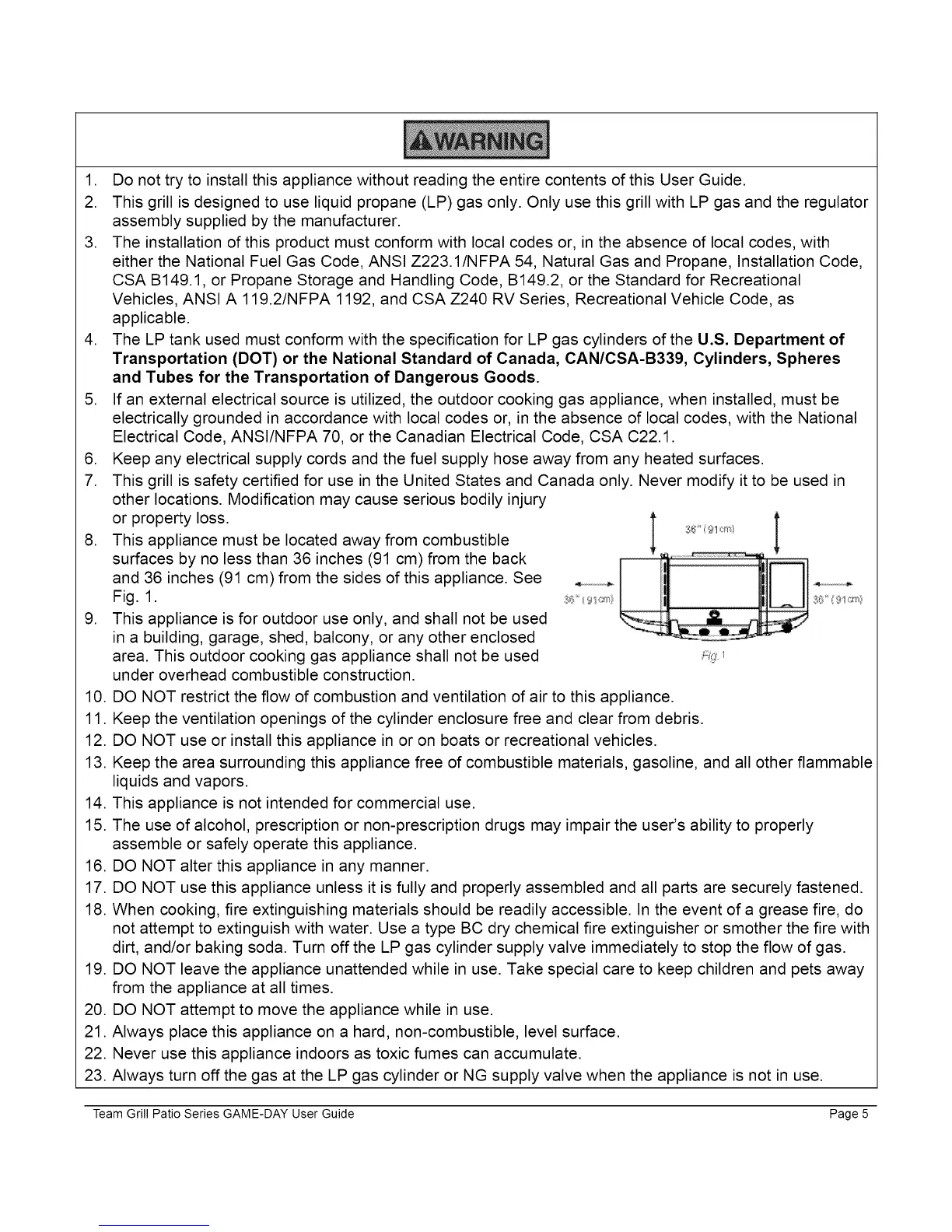 Team Grill Patio Series GAME-DAY User Guide Page 5