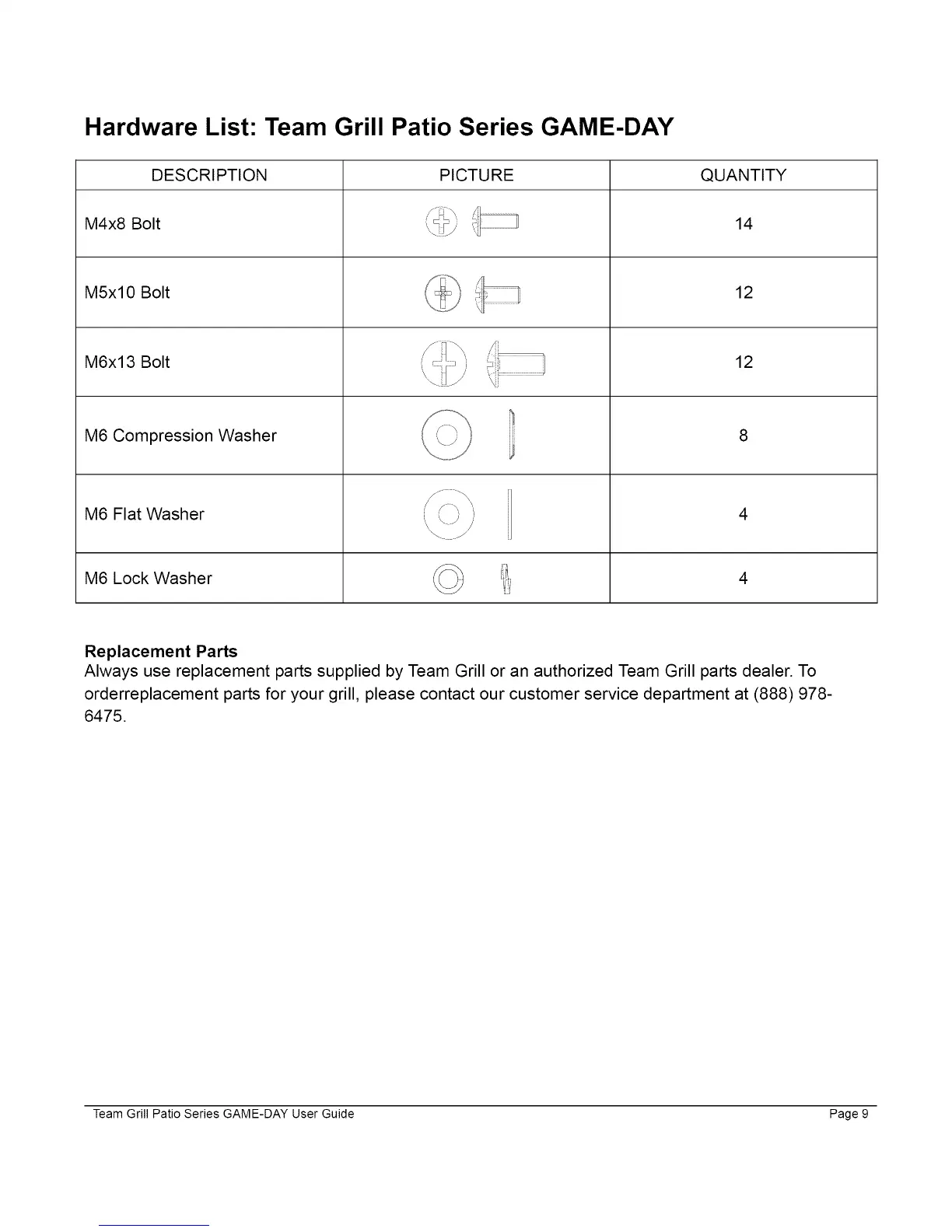Team Grill pgd - Hardware List: Team Grill Patio Series GAME-DAY