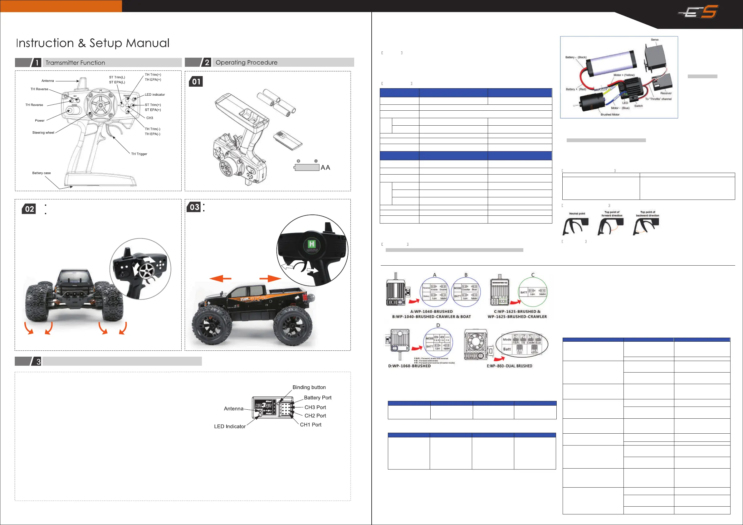 position of throttle channel, D/R, ATV, ATL or EPA parameters,otherwise the ESC may not work properly.