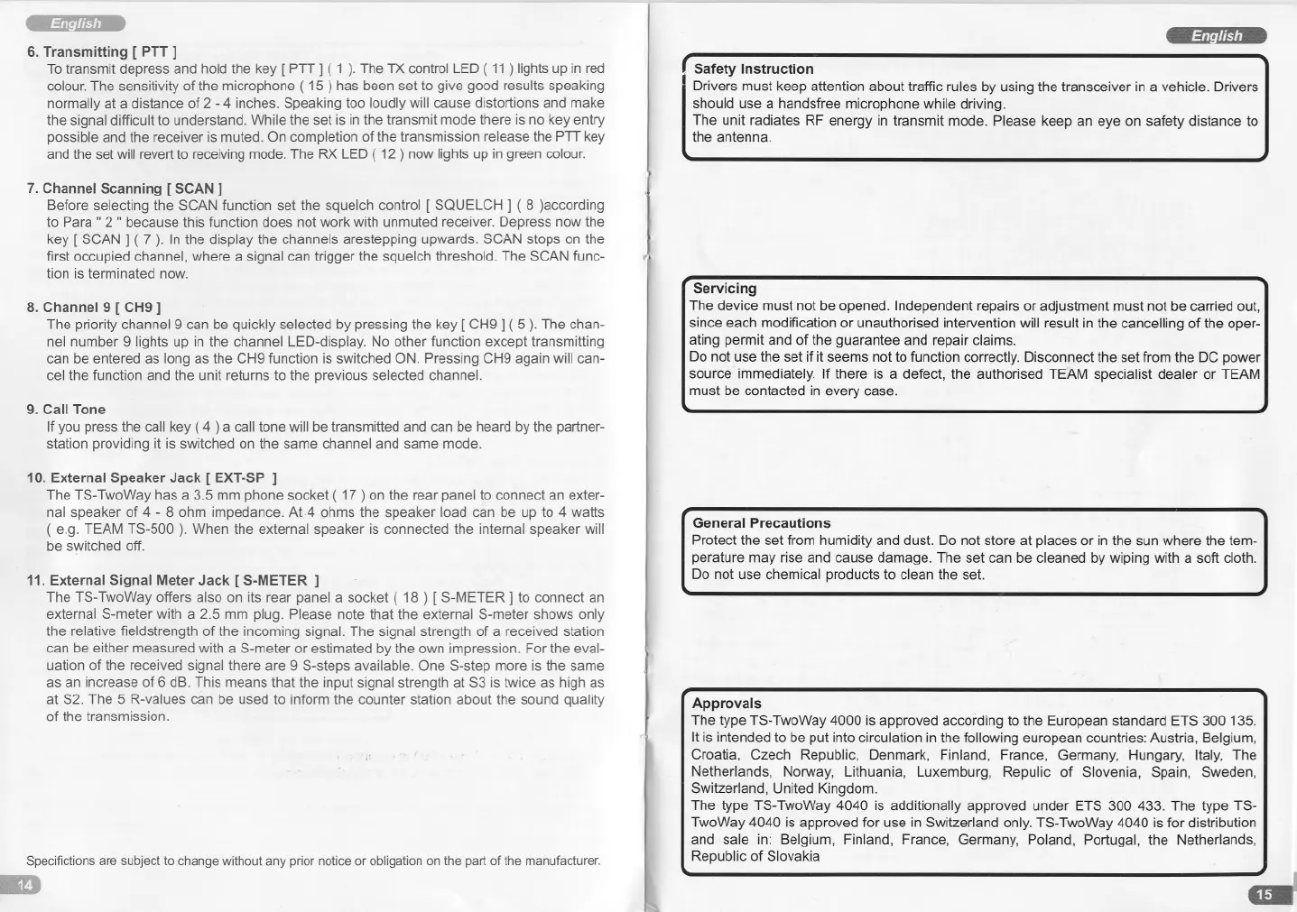 The type TS-TwoWay 4000 is approved according to the European standard ETS 300 135.
