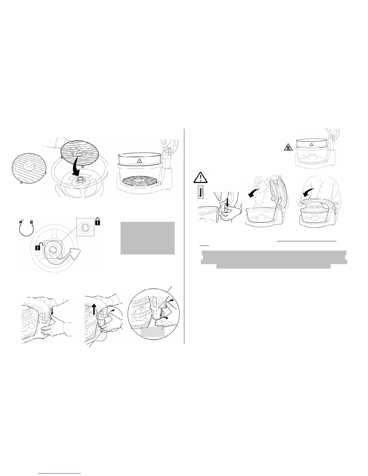 • Take out the food and/or use the tongs to remove the cooking rack. Be very careful
