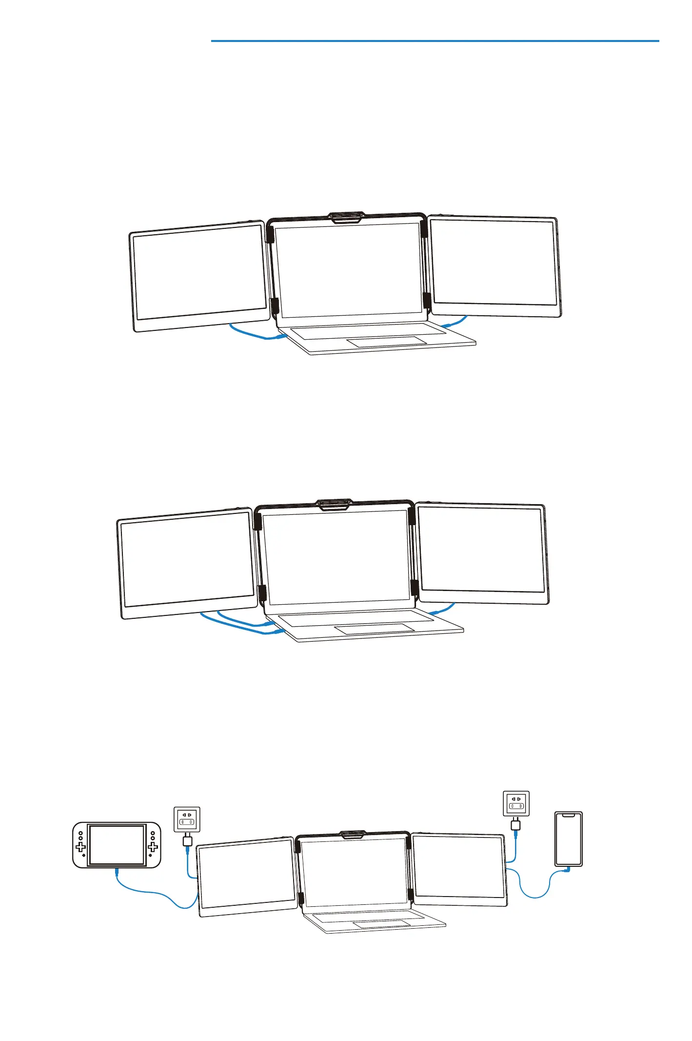 connect one monitor using the USB-C cable. Then connect the other monitor using the USB-A to
