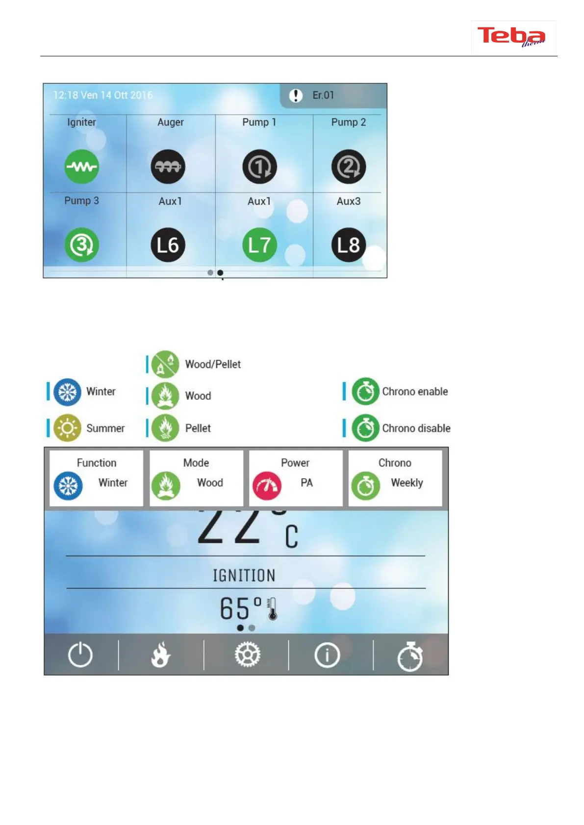 level of the Pellet or wood mode is shown.