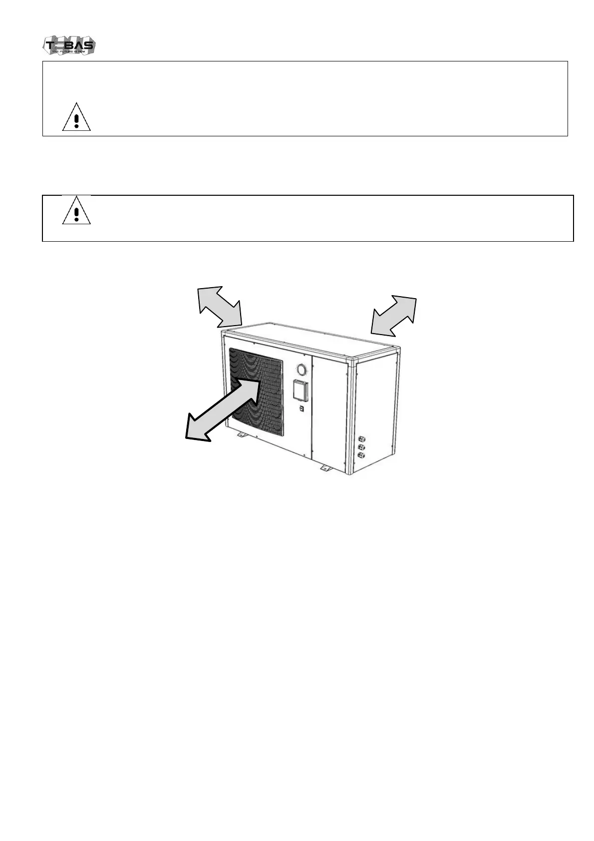 Maintain at least 1 m (40”) / minimum 30 cm (12”) of space on the rear (evaporator air inlet) and minimum 3 m (120”)