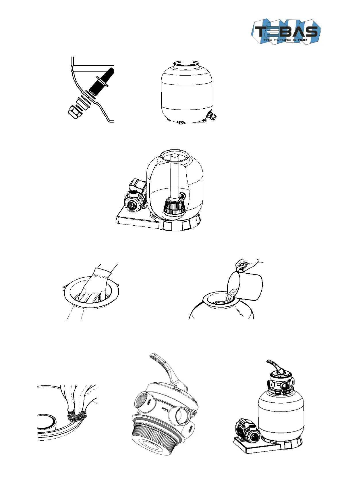 2. Mount the drain plug in the filter tank.
