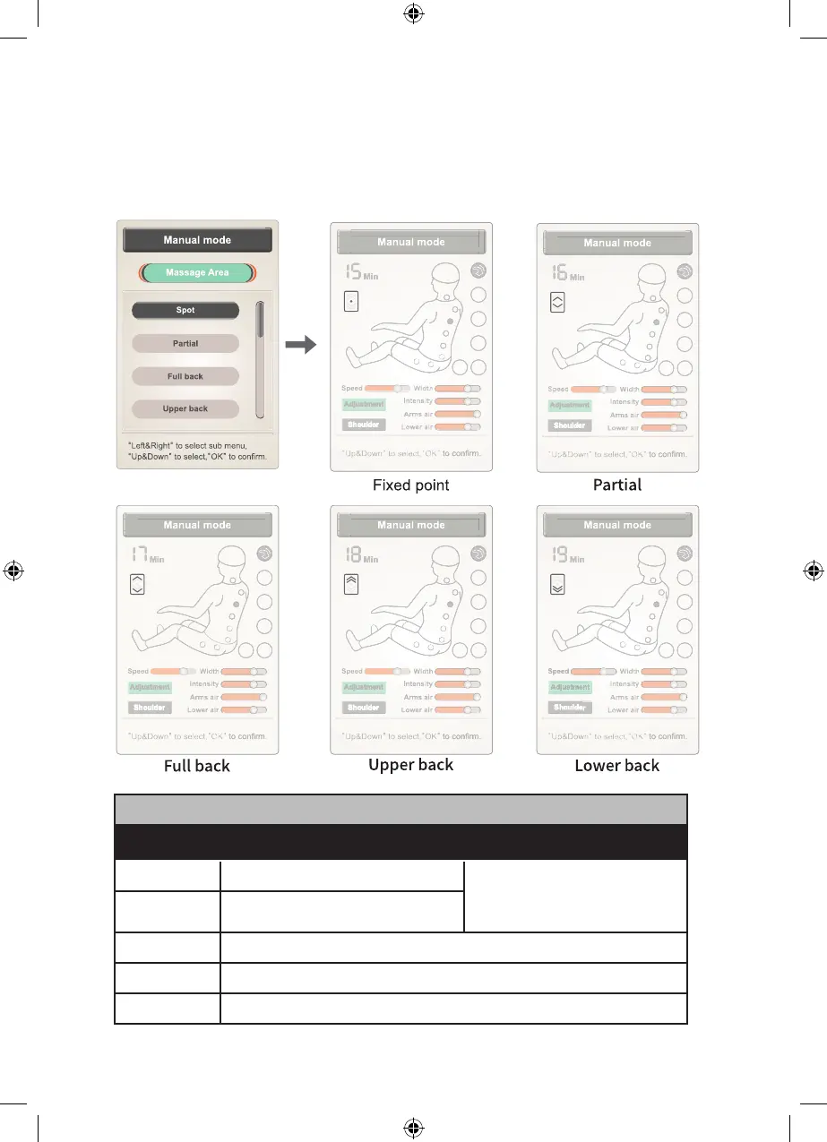 Manual Massage Area Mode: massage spot, partial, full back, upper