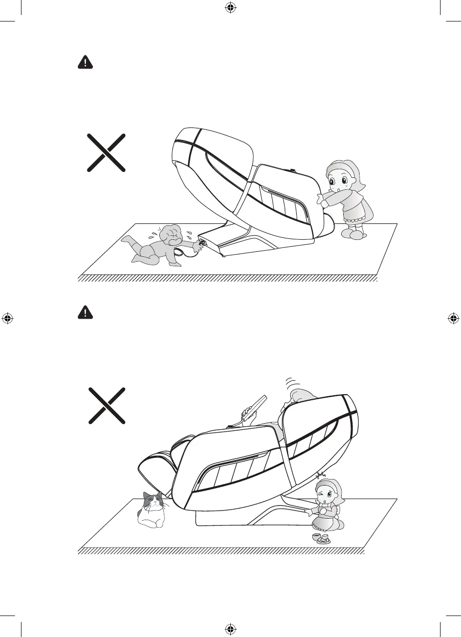 children or pets under the bottom of the footrest and backrest, to avoid the risk