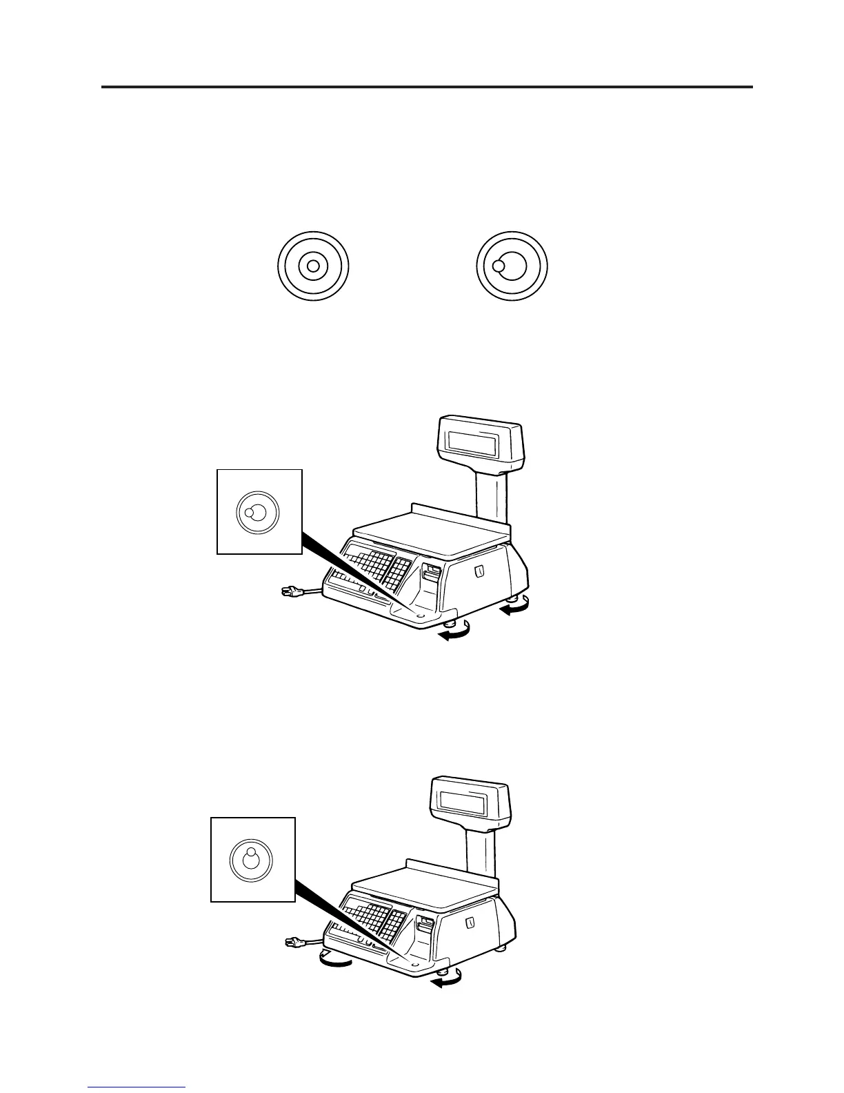 Set the scale on a stable and level surface. Level the scale by turning the adjustable legs so
