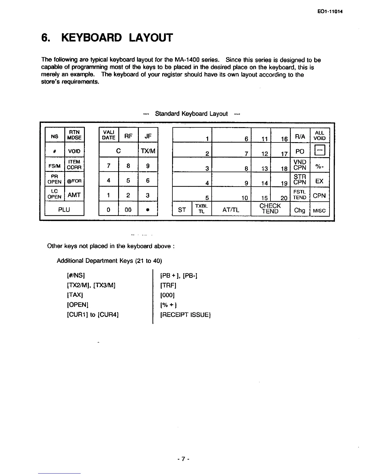 TEC MA-1400 - Keyboard Layout and Key Functions
