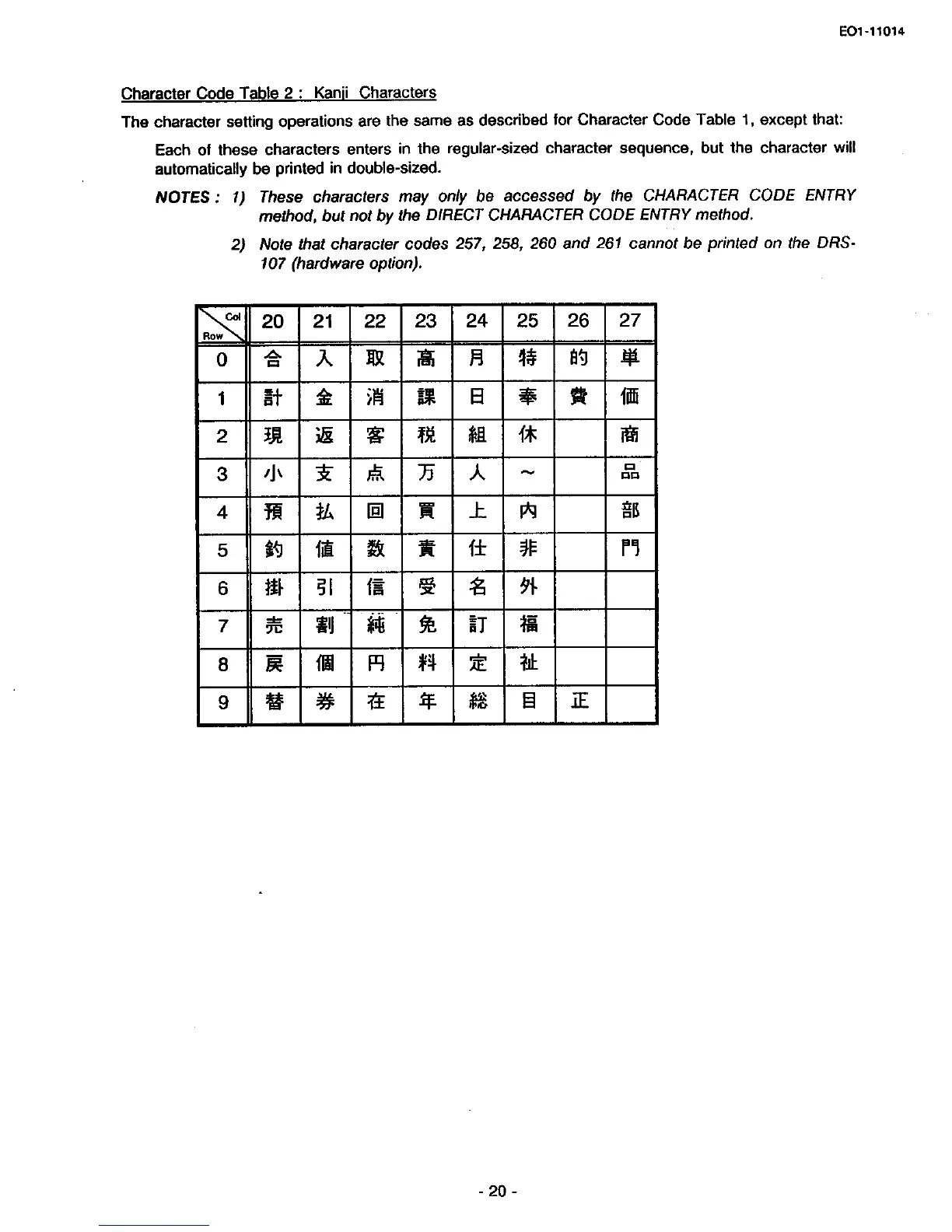 TEC MA-1400 - Kanji Characters
