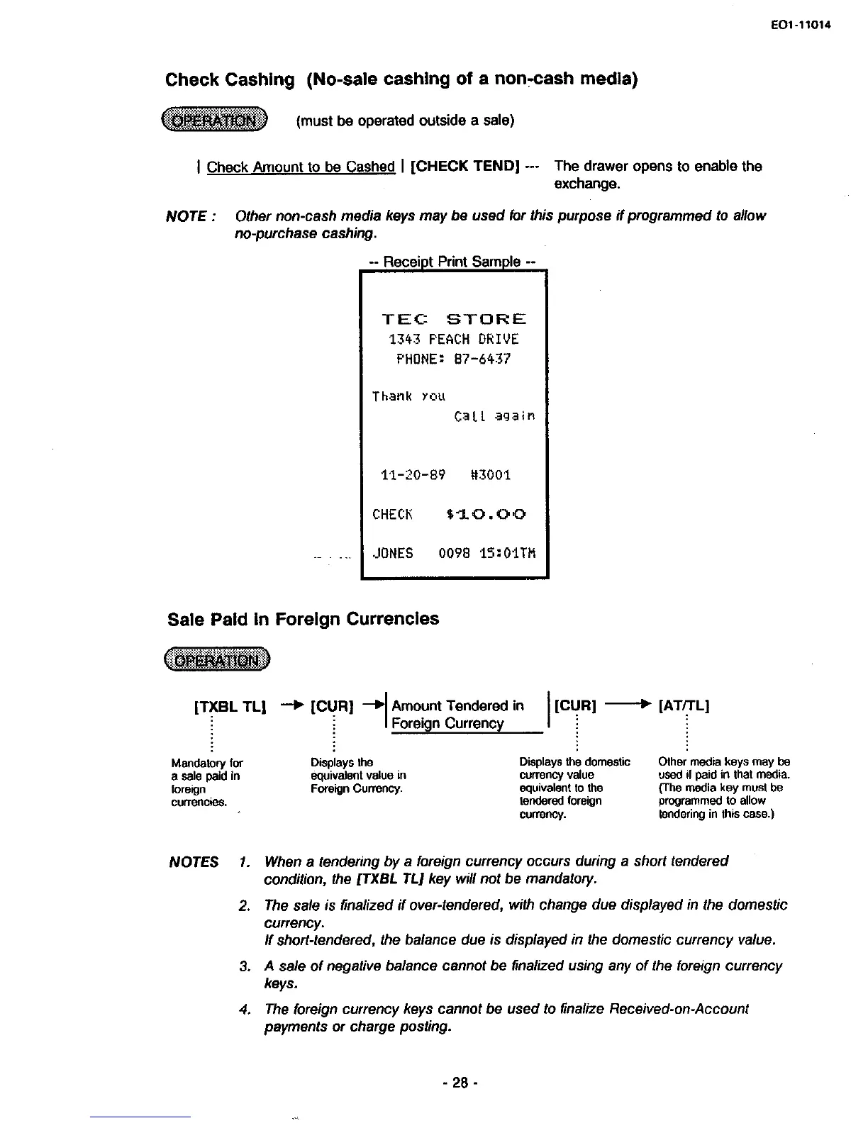 TEC MA-1400 - Check Cashing and Foreign Currency Sales