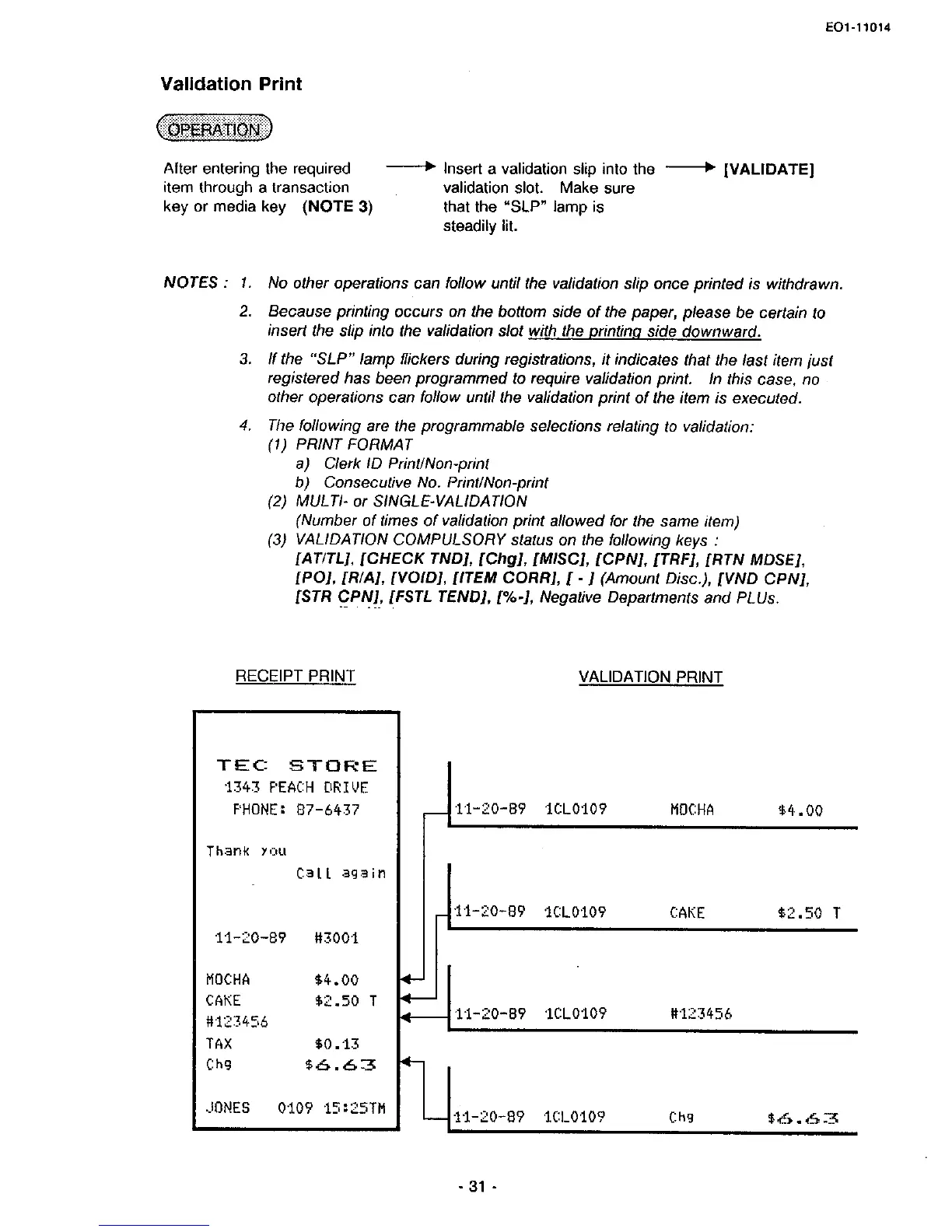 TEC MA-1400 - Validarion Print; Receipt Print; Validation Print