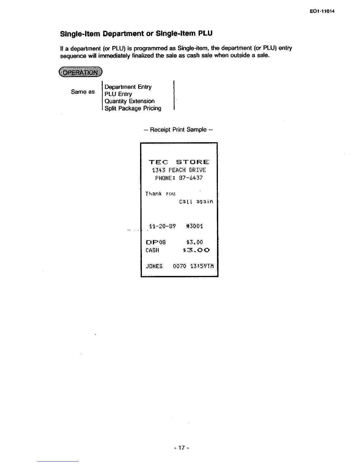 TEC MA-1400 - Single-Item Department or Single-Item PLU