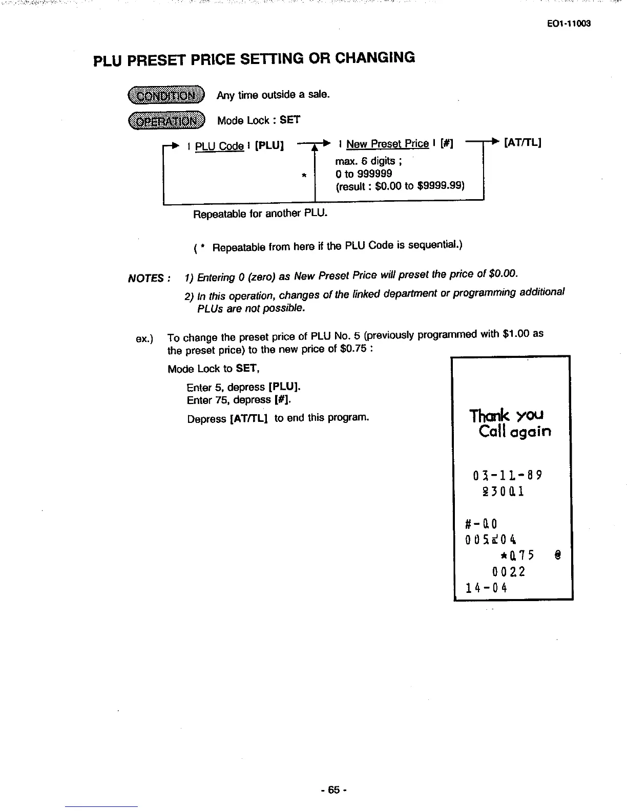 TEC MA-216 - PLU Preset Price Setting or Changing