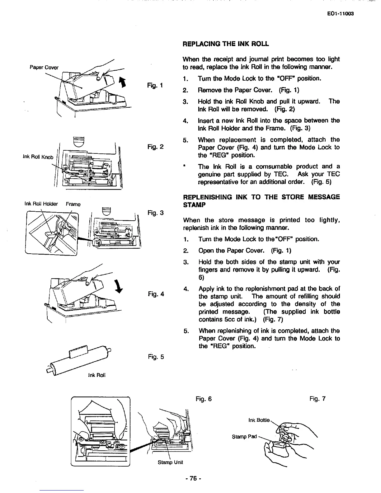 TEC MA-216 - Replacing the Ink Roll; Replenishing Ink to the Store Message Stamp
