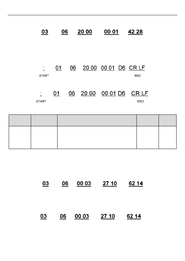 Example 2: set the max. output frequency of the inverter with the address of 03H as100Hz.