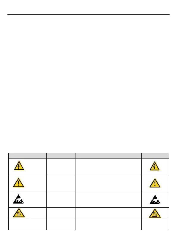 damage to the equipment, and advice on how to avoid the danger. Following warning symbols