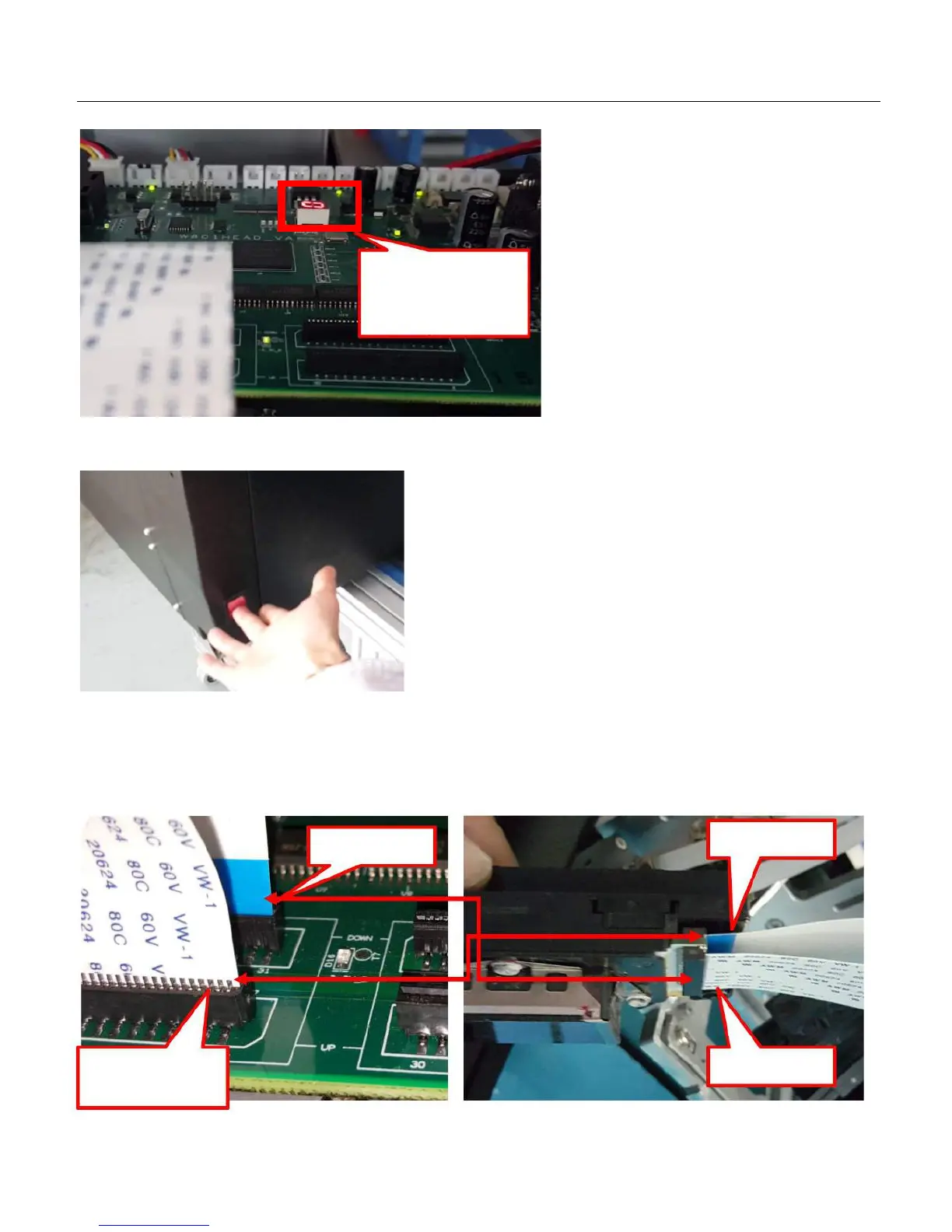 7. After power off the machine, then Connect the print head cable to the print head. Please pay attention to the DOWN, UP mark