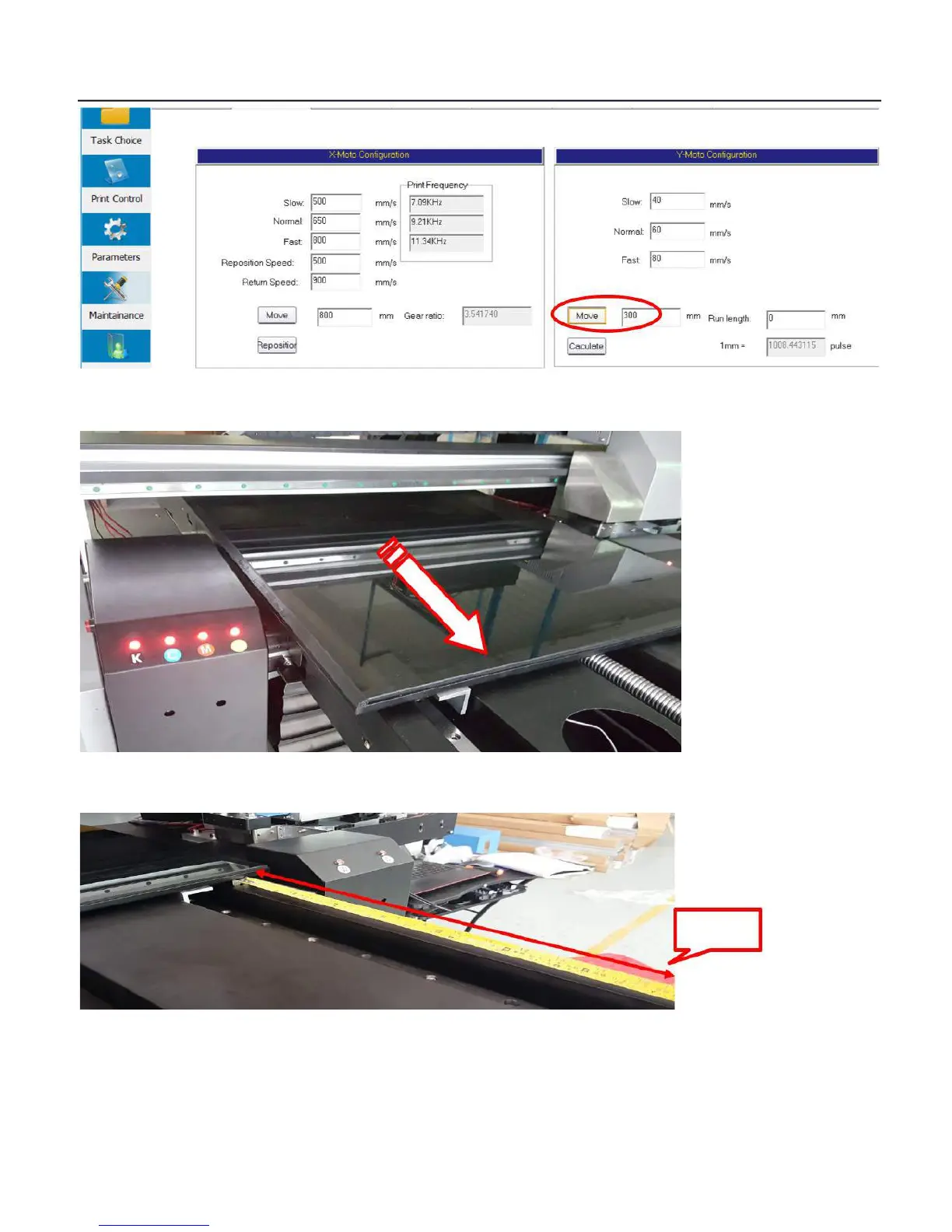4. Then the top printer will move from front to a certain distance then stop.