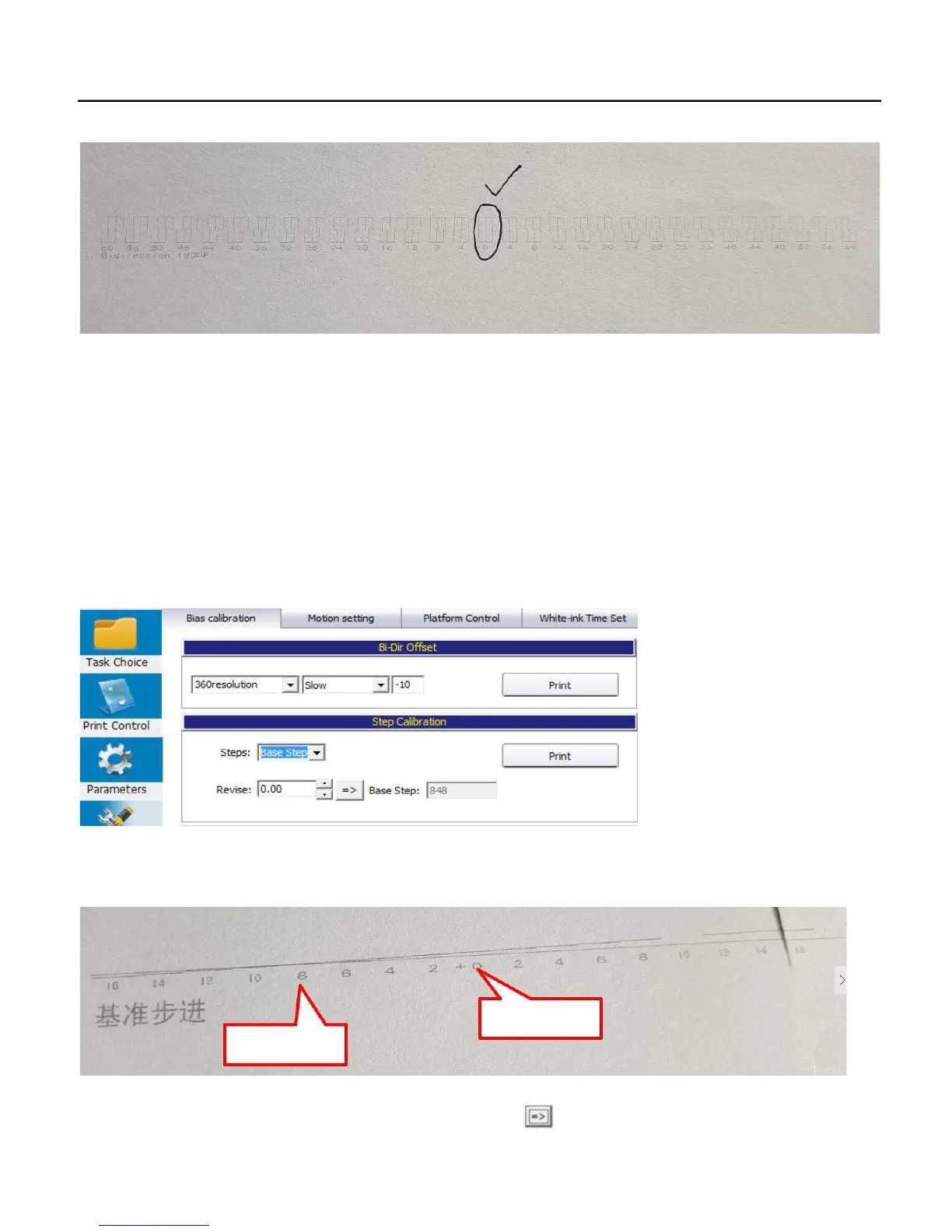 1. Put a new white paper on the flatbed, Go to control software/Maintainance/Bias calibration/step calibration/steps/Base