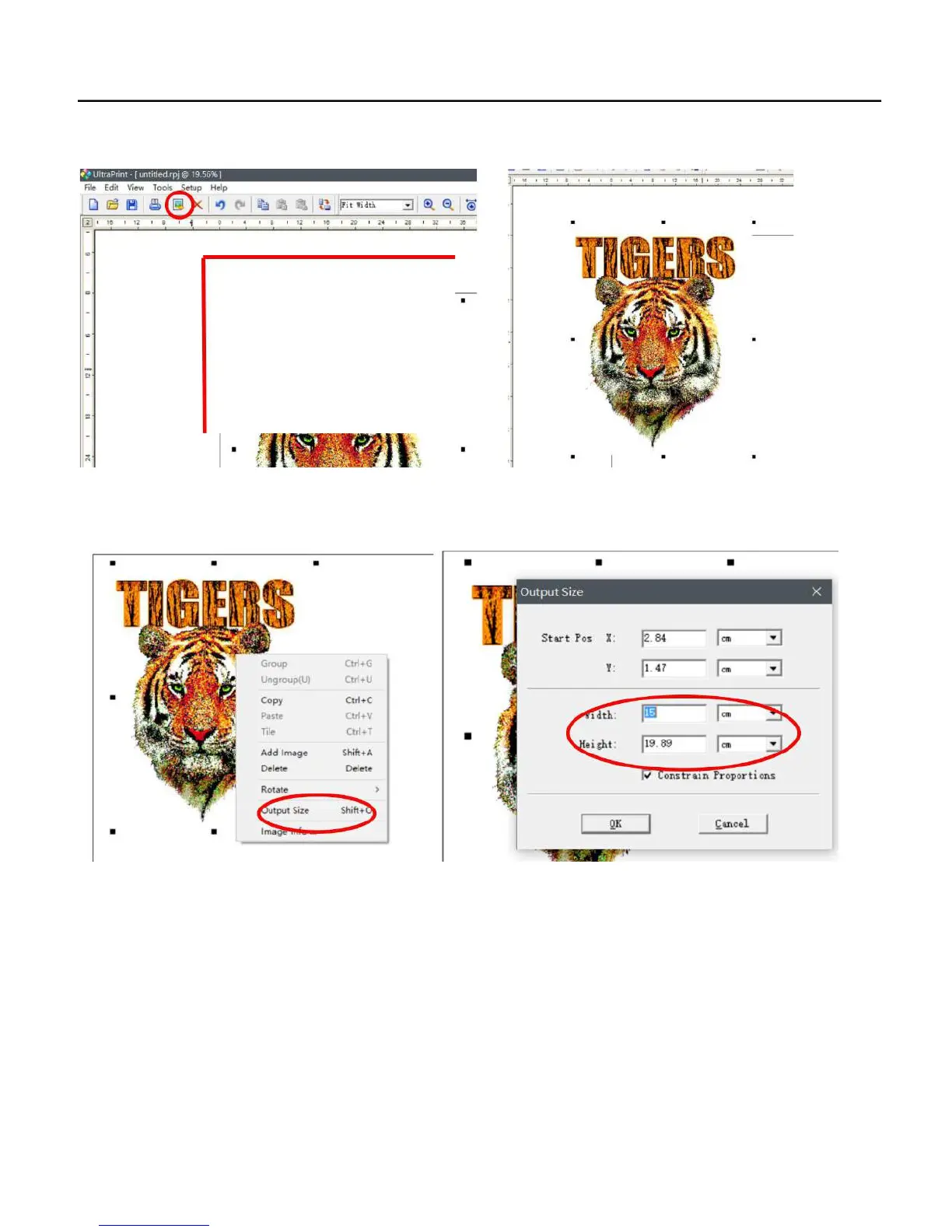 C: Right click the image, to choose the output size/Width/Height, Be sure that the width is small than 40cm, and Height is small
