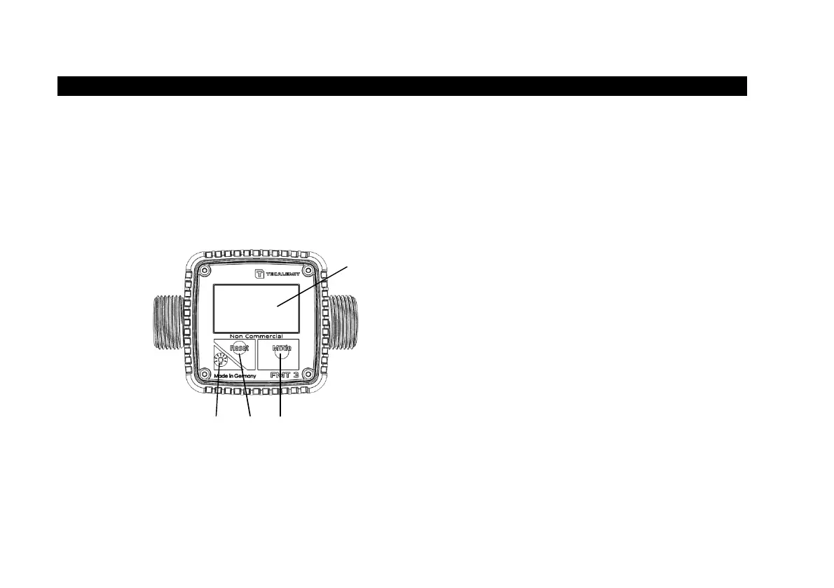 The FMT 3 is operated using three keys: "Reset" (2), "Mode" (3), and "Light" (1). Information is shown
