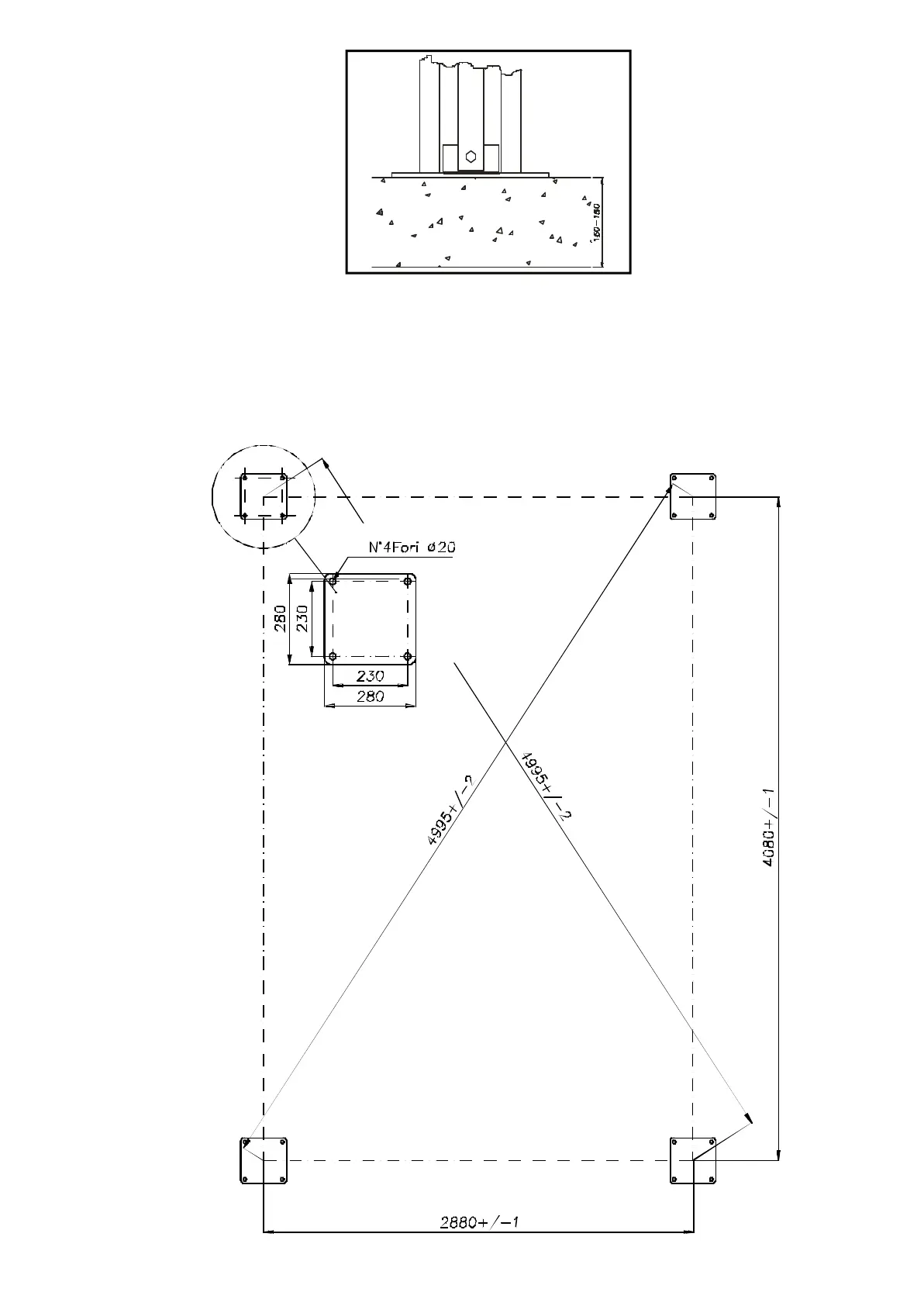 4 Holes diam. 20