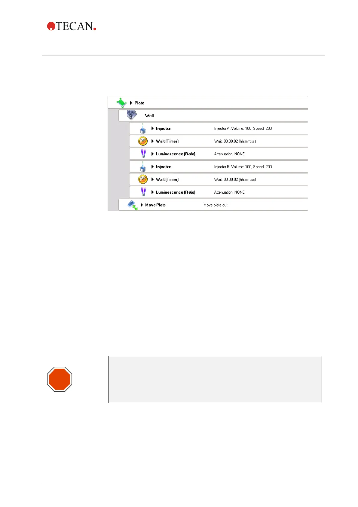 Injector B injects 100 µl with speed 200 µl/sec., refill mode standard
