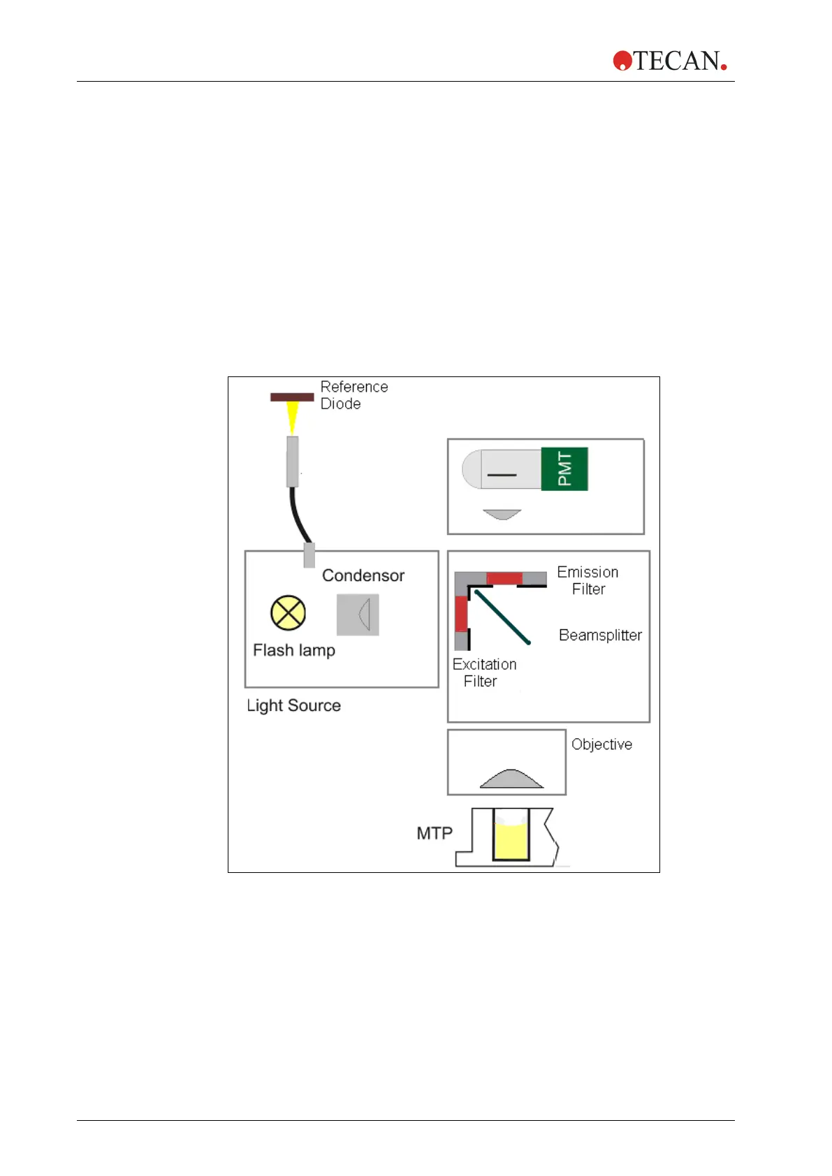 The following parts constitute the fluorescence intensity system of the Infinite
