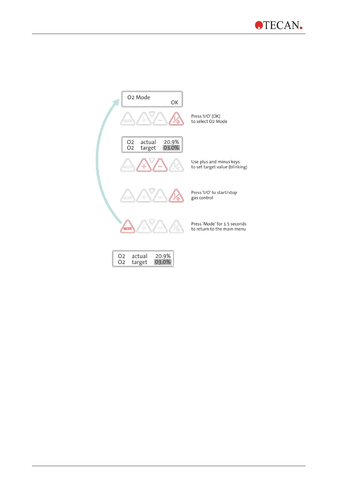 2. Change target value for ‘O2’ (using the plus and minus keys)