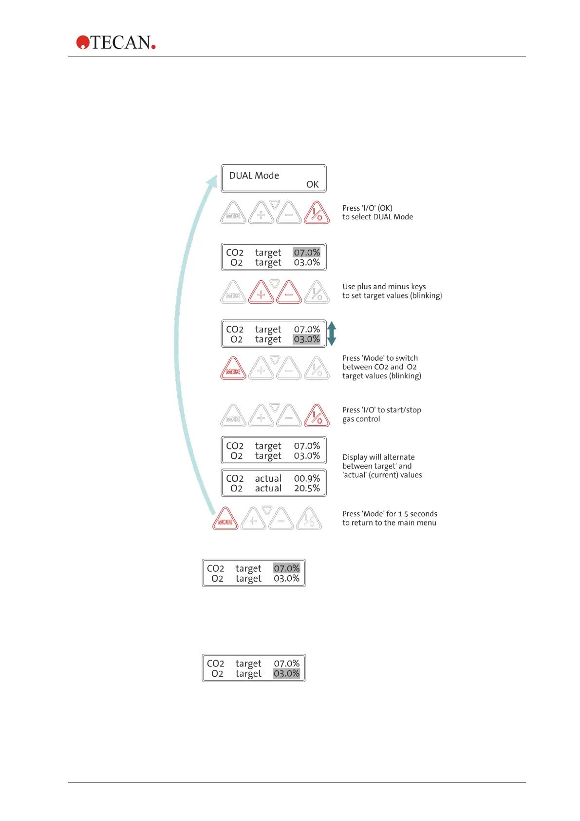 2. Change target value for ‘CO2’ (using the plus and minus keys)