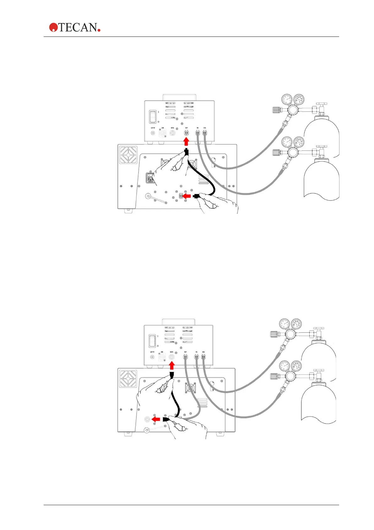 4. Connect the outlet port (OUT) of the gas control module to the inlet port of