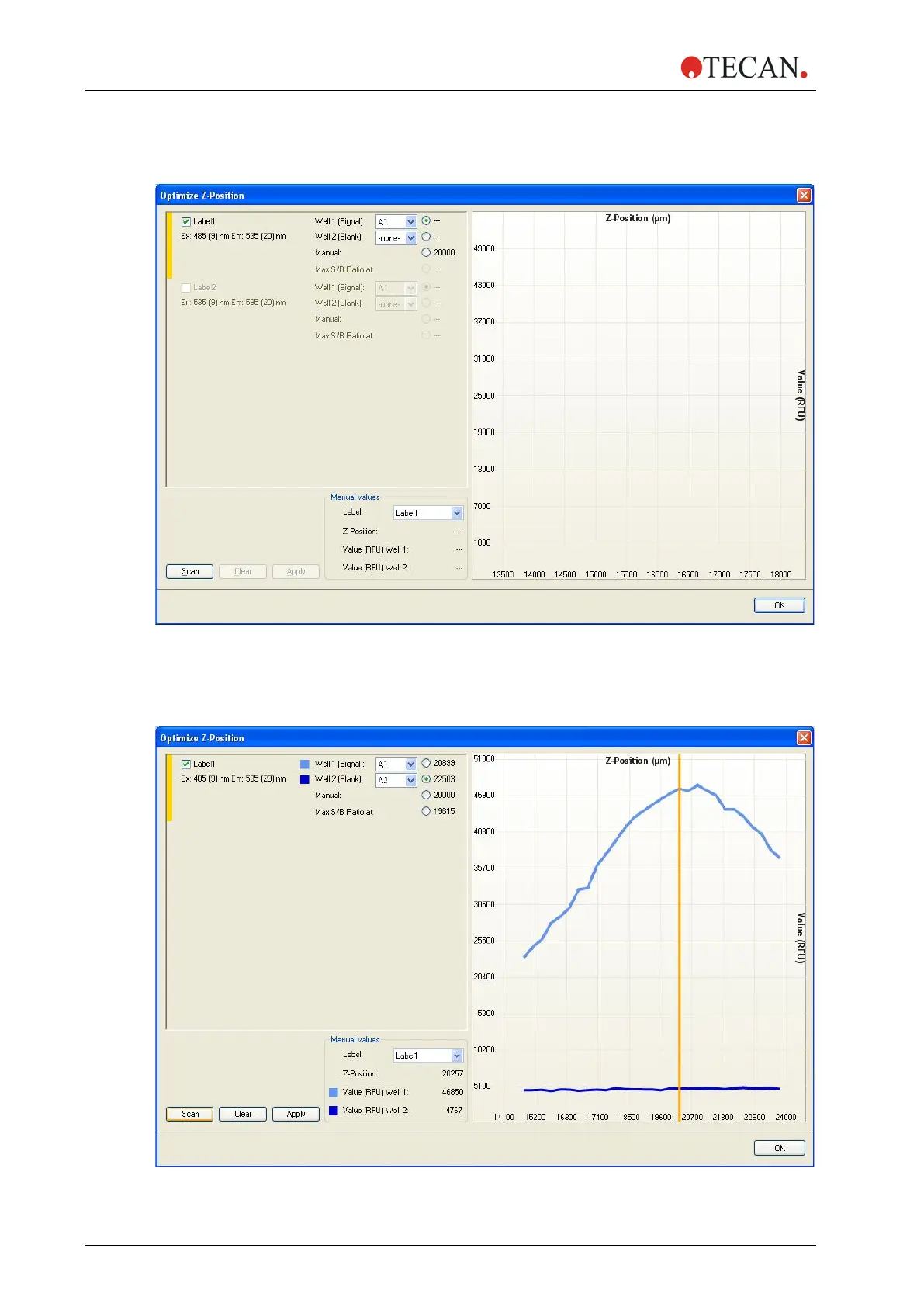 for the z-position optimization. Select the well(s) and click ‘Scan’ to start the z-