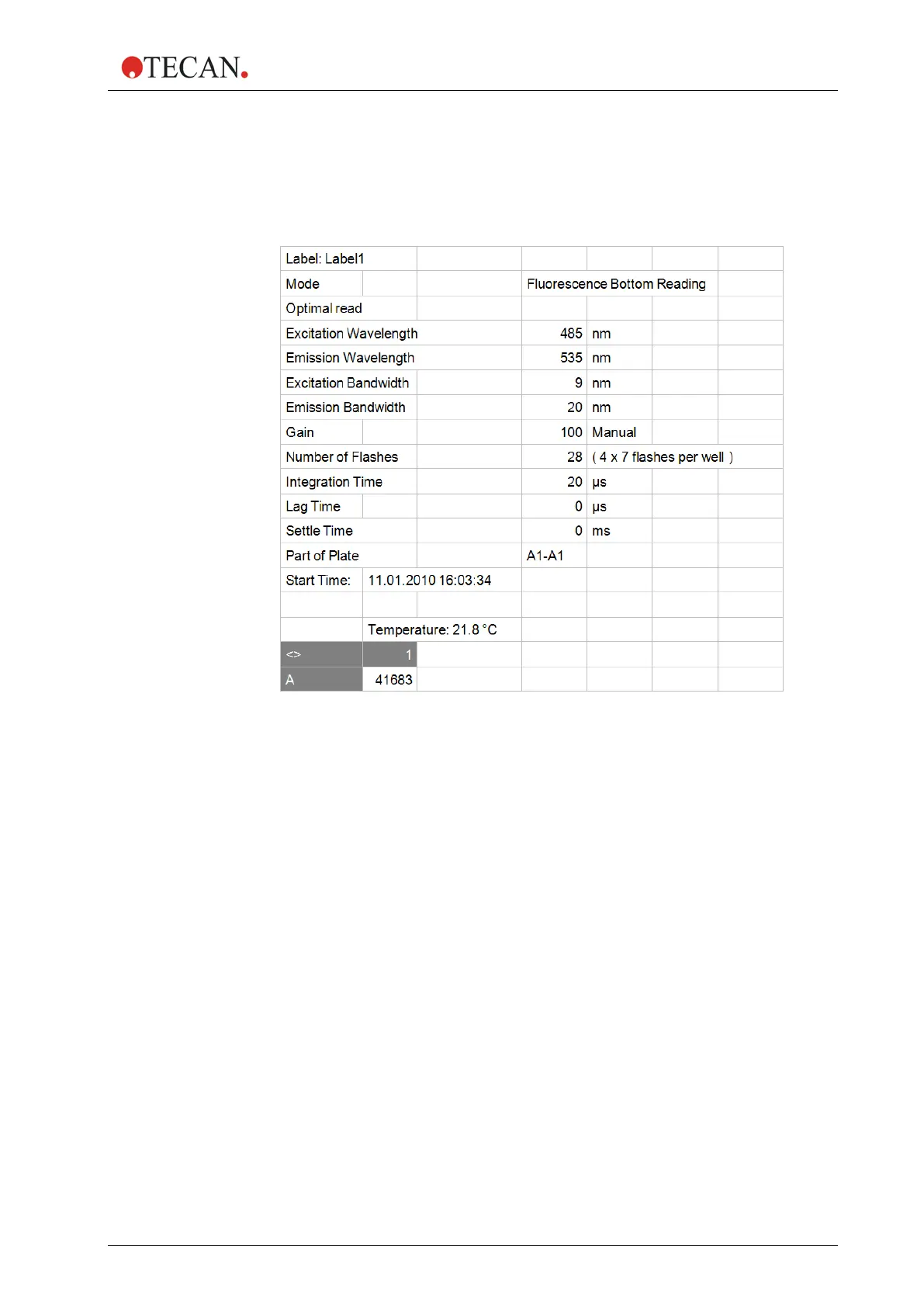 Figure 39: Results output for a measurement with Optimal Read (example for a