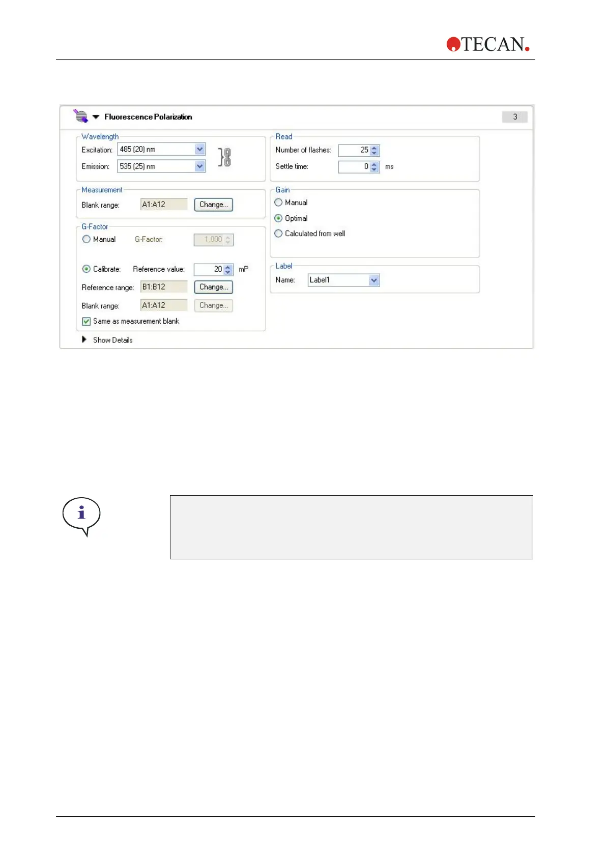 Reference value: select a polarization value for the reference used, e.g. 20 mP