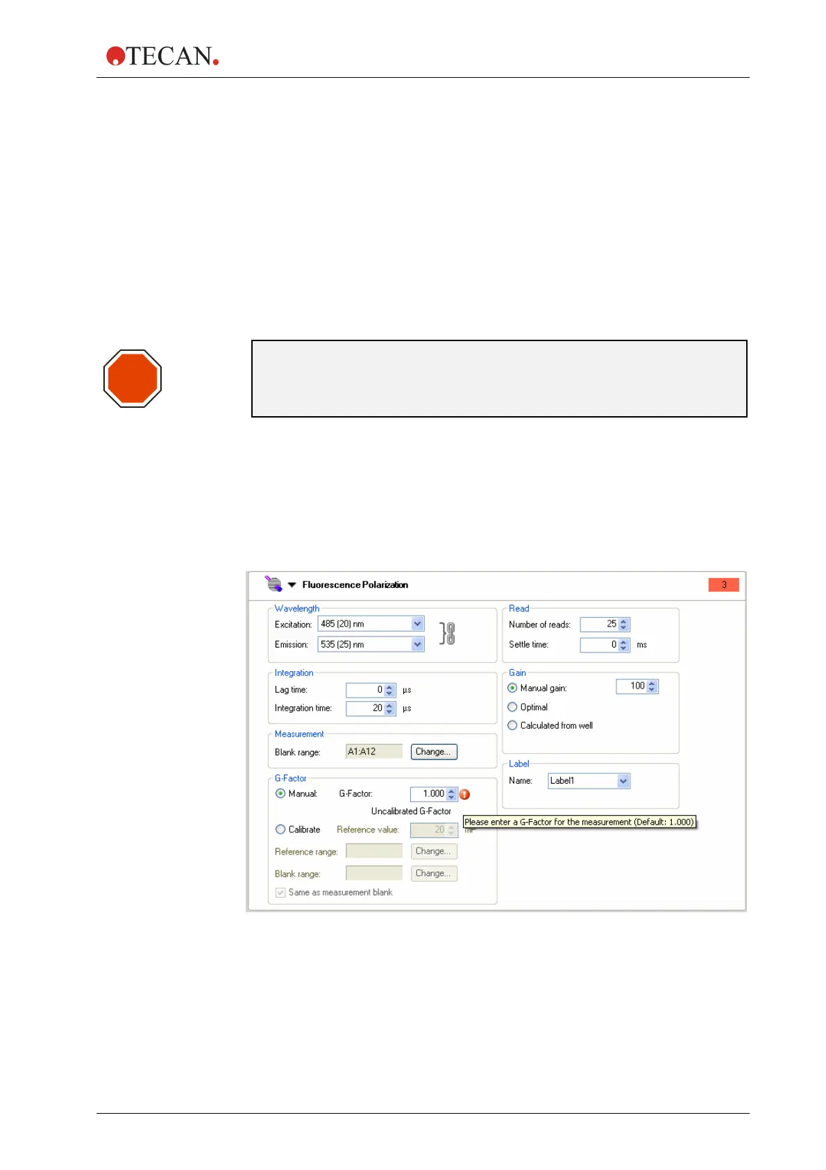 If no calibrated G-factor is available, the default value of 1 will be displayed and